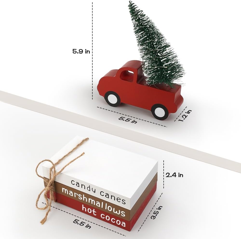 🎄Individual Truck: The red truck can be placed together with the book stack or separately