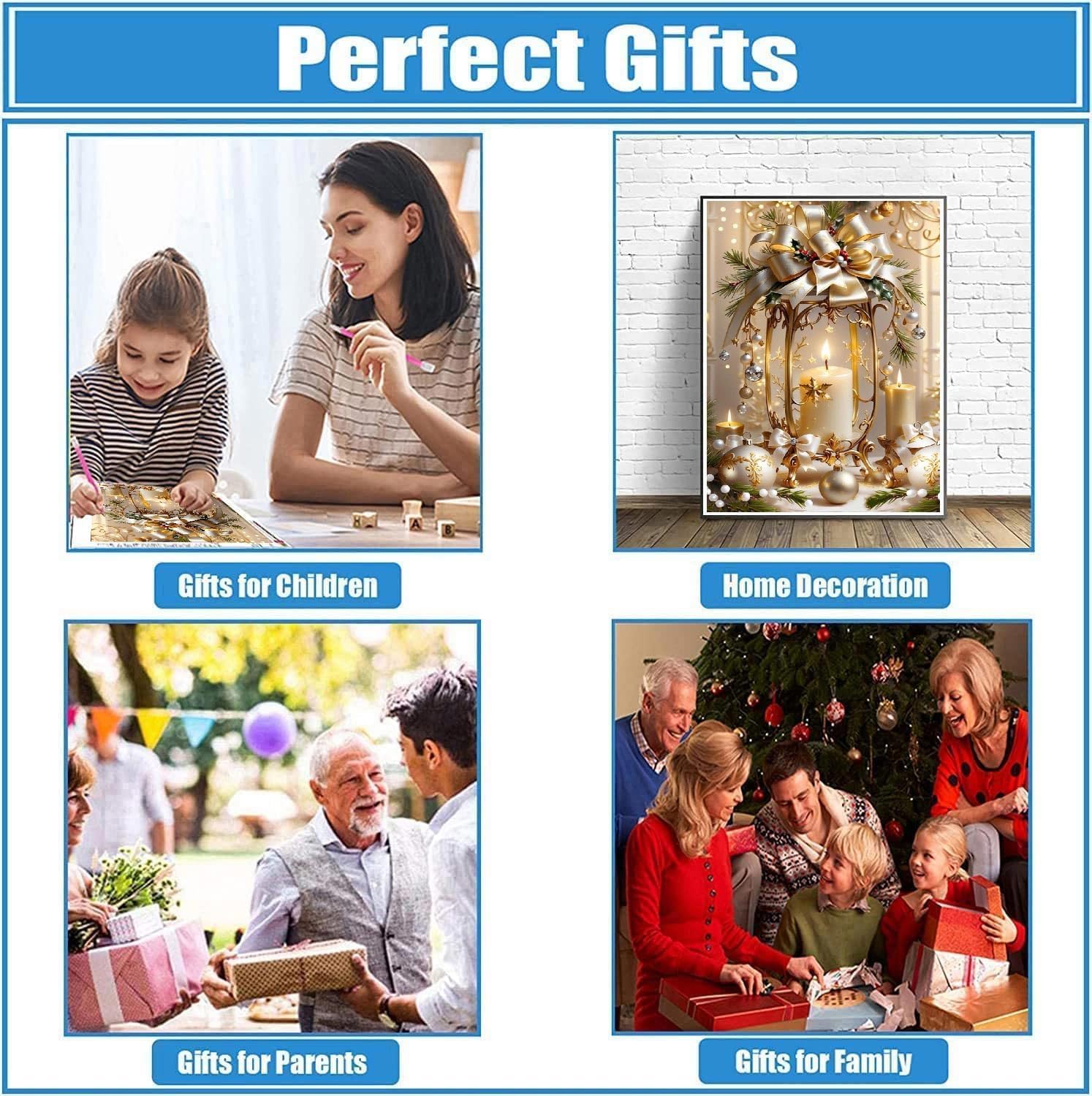 Home Wall Decor: This Christmas candles diamond painting is a handmade work of art. The finished product is very shiny and pretty. Once you’re done, you’re sure to feel a sense of accomplishment and enjoy this diamond dot art piece for adults. This Christmas candles diamond painting is perfect for decorating your living room, bedroom, study room, office and more.
