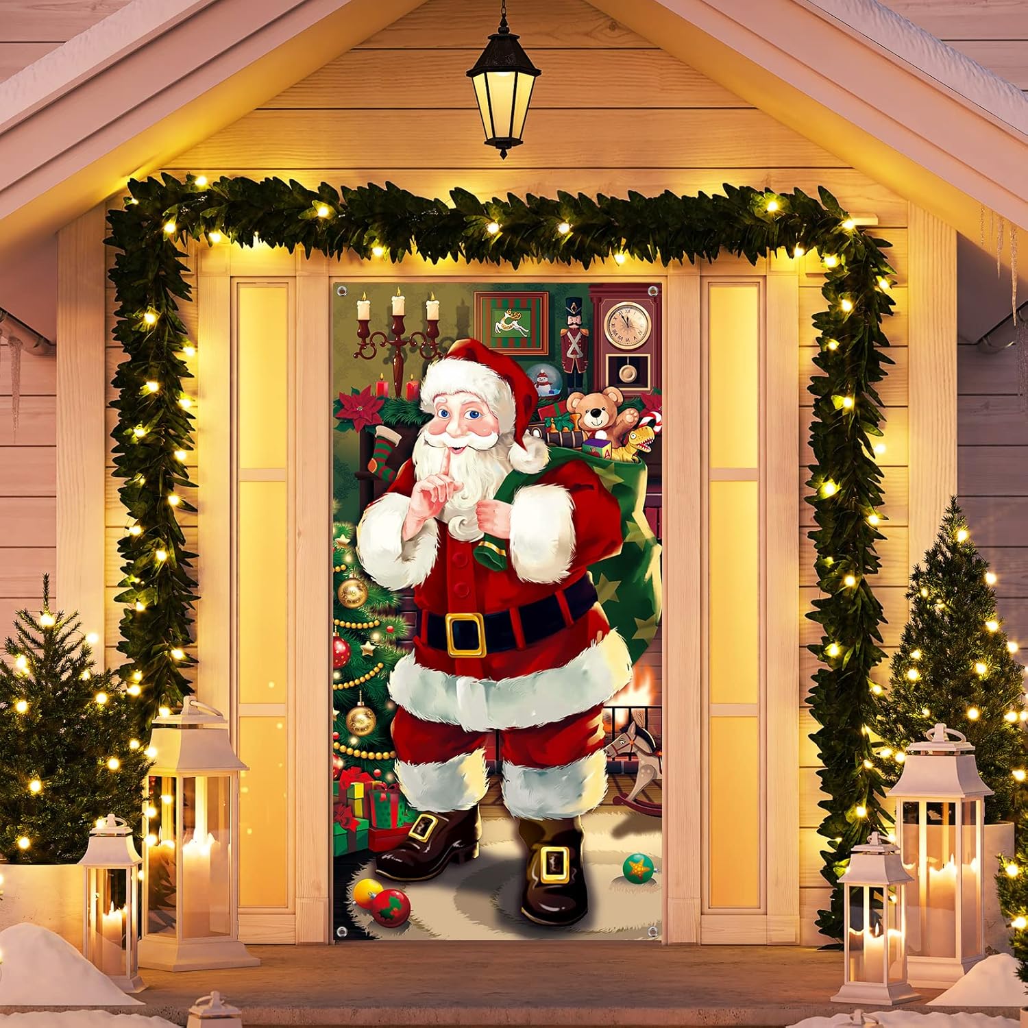 Appropriate Size: comes with a Christmas Santa Claus door cover and a strong rope, the Xmas door hanging banner measures approx. 71 x 35 inches/ 180 x 90 cm, the rope measures 20 ft/ 6 meter long, suitable for most door decoration and match well with your other holiday Christmas supplies