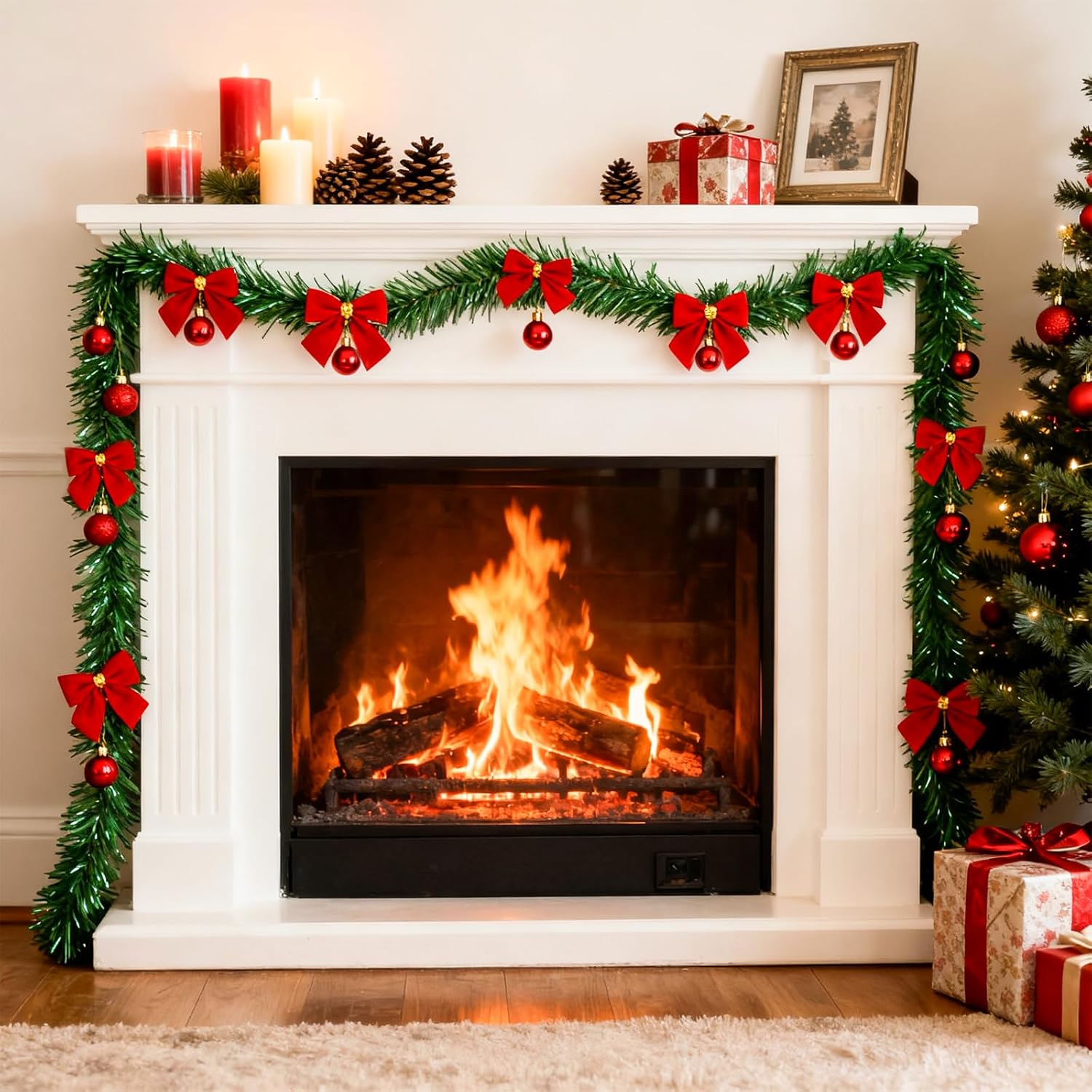 Versatile & Widely Applicable Christmas Decoration Designed for universal appeal, our christmas garland is perfect for both indoor and outdoor use. Elegantly decorate your fireplace, front door (alongside christmas wreaths for front door), windows, walls, and even as a base for your christmas tree skirt or tree skirt. They create stunning effects for any christmas decor theme, be it classic green, a modern white christmas tree, or even a quirky grinch christmas tree setup.