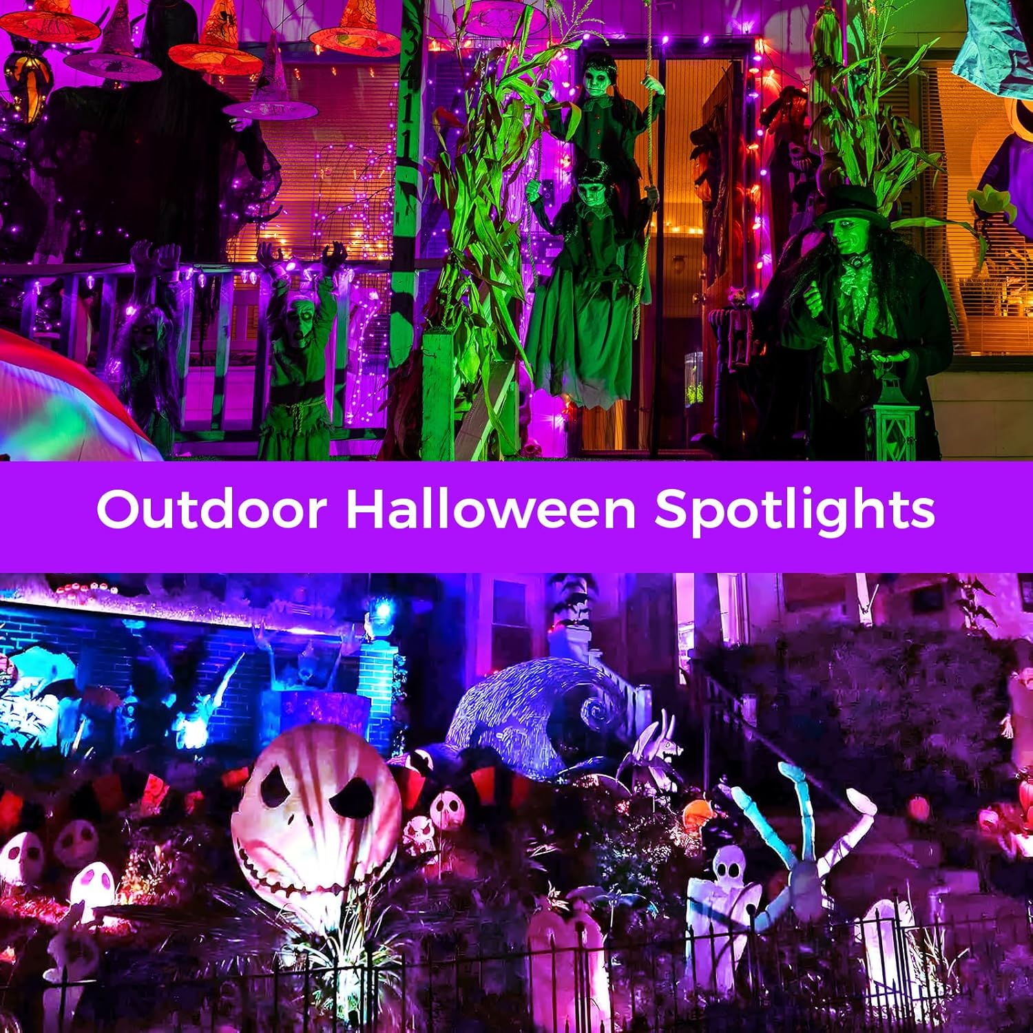 Memory function: Outdoor Halloween lighting with memory function, remain the color and mode you set last time. Great for daily white lighting too. The garden light 270 degree adjustable, The correct tilt angle can give your house and yard a very high-end feel. The 3 lamp holder holes also provide more installation methods.