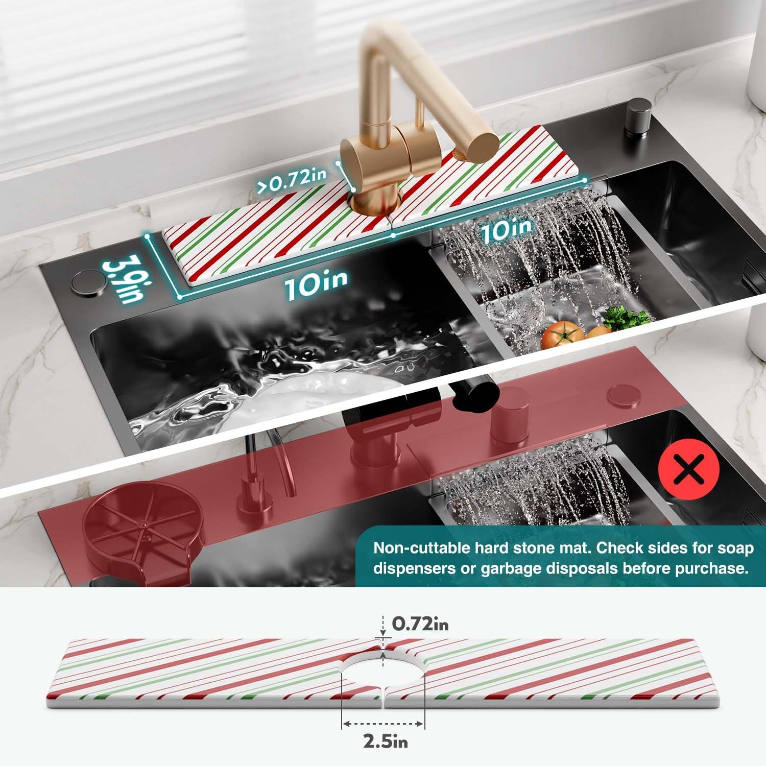 Christmas Kitchen Sink Stone Faucet Mat, Diatomite Drying Stone Mat for Xmas Decorations Indoor, Prevent Moisture – Sink Splash Guard for Kitchen Counter Holiday Gift Home Decor, 20”x3.9”
