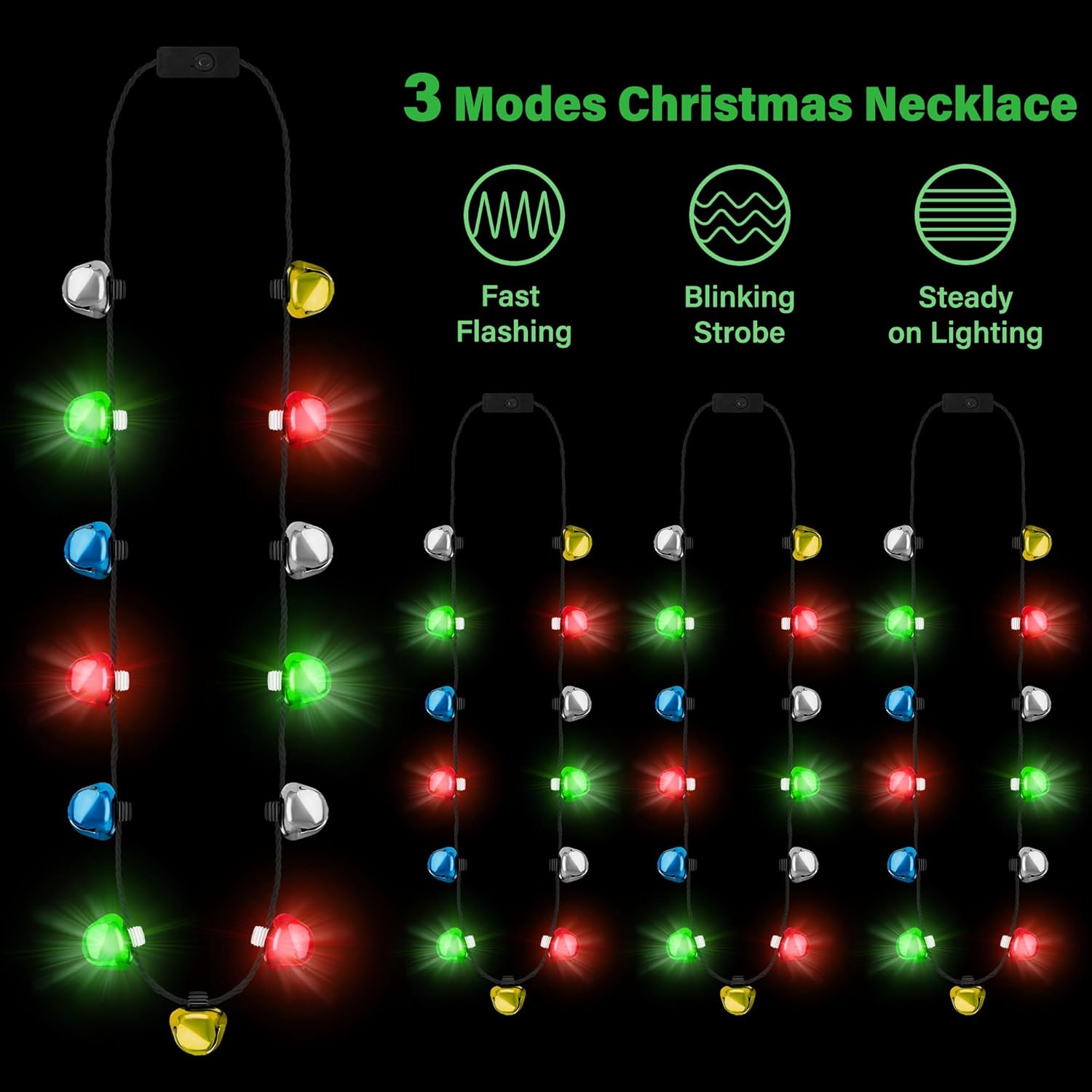 What You Get – You will get 3pcs bells Christmas light necklace. Christmas necklace for kids and adults, universal size suitable for most people.