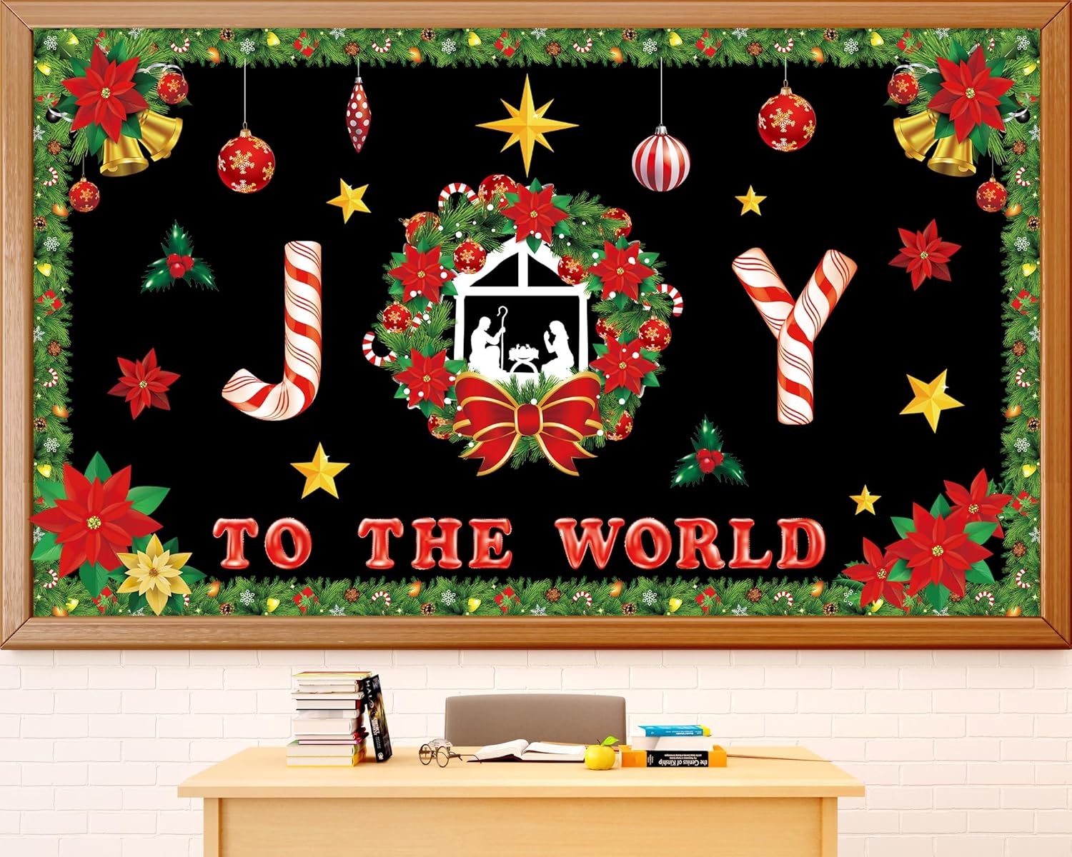 Christmas Nativity Bulletin Board Decorations Religious Joy to The World Classroom Decoration Christian Xmas Wreath Cutouts for Winter Holiday Home Office Church Sunday School Chalkboard Wall Supplies