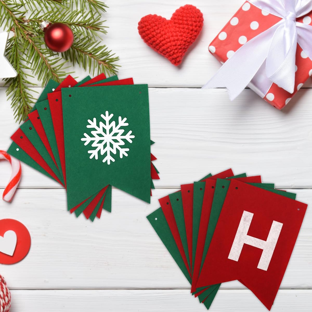 【Felt Material】Our Christmas office decorations are made of premium felt, which is lightweight and easy to hand on, enough to be re-used on the next holiday party.