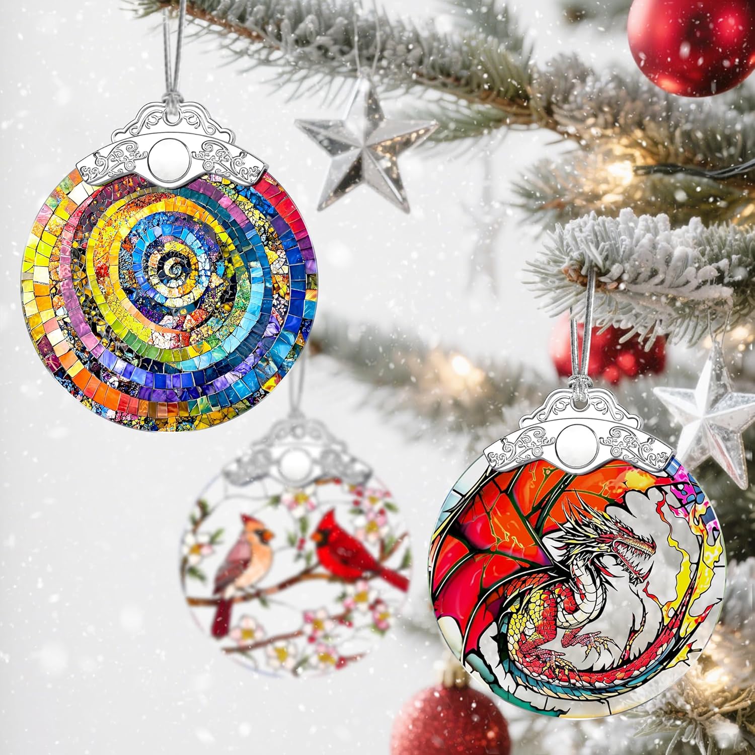🎄Effortless Hanging: Each stained glass ornament comes with a sleek silver ribbon for easy hanging—just loop and hang. Ideal for use as Christmas decorations, Christmas home decor, or Christmas tree decorations, letting you spend less time preparing and more time enjoying holiday magic.