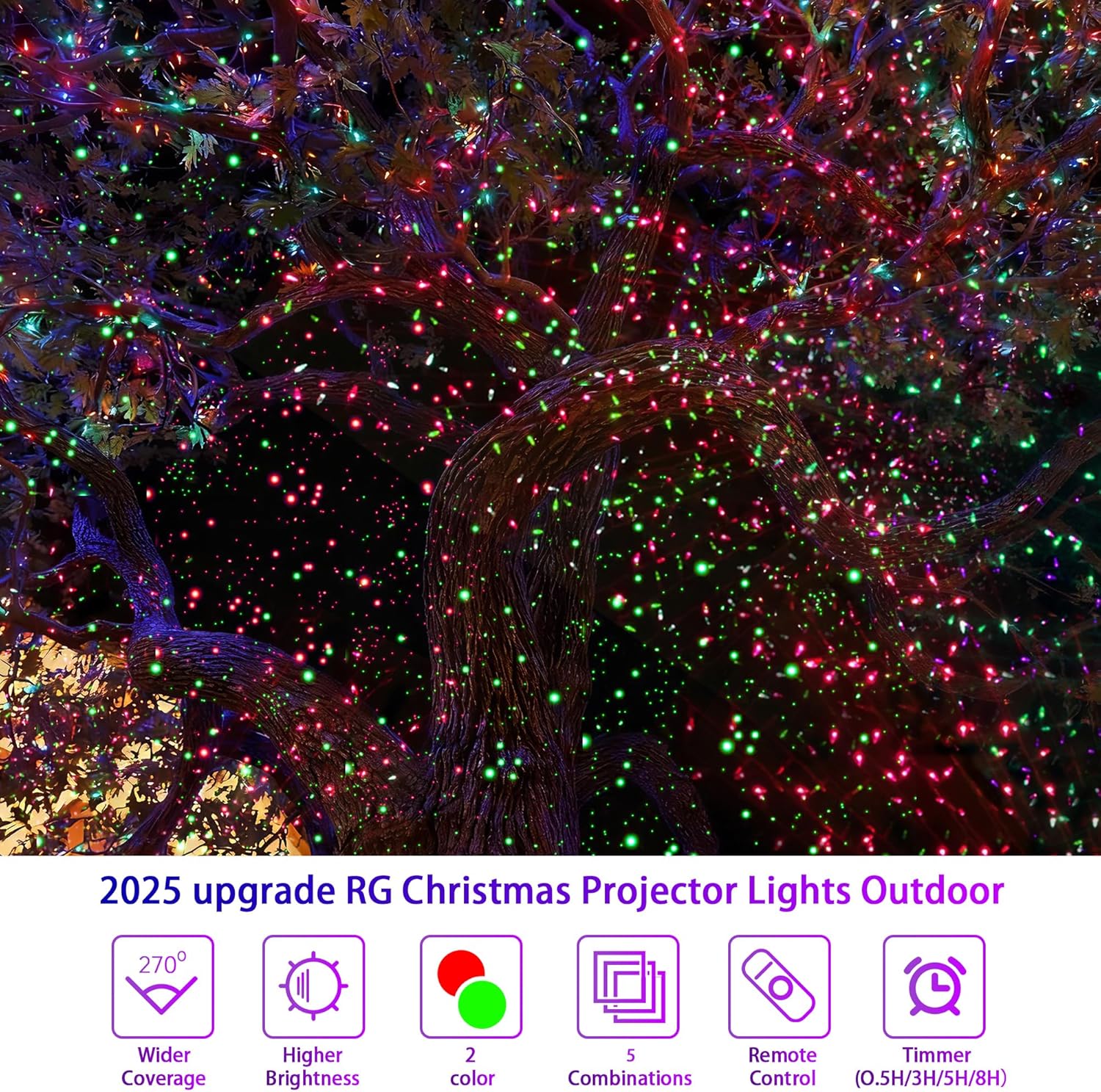 Moving Firefly Christmas Projector: Our Christmas projector lights outdoor offer combination and choice of static and dynamic red and green colors, moving firefly effect, moving speed control and static control.Whether you want to decorate your yard, room, or Christmas tree, this Christmas projector is a perfect choice for outdoor Christmas decorations and indoor Christmas decorations. It can transform a space into an impressive holiday wonderland,creating a cozy festive atmosphere
