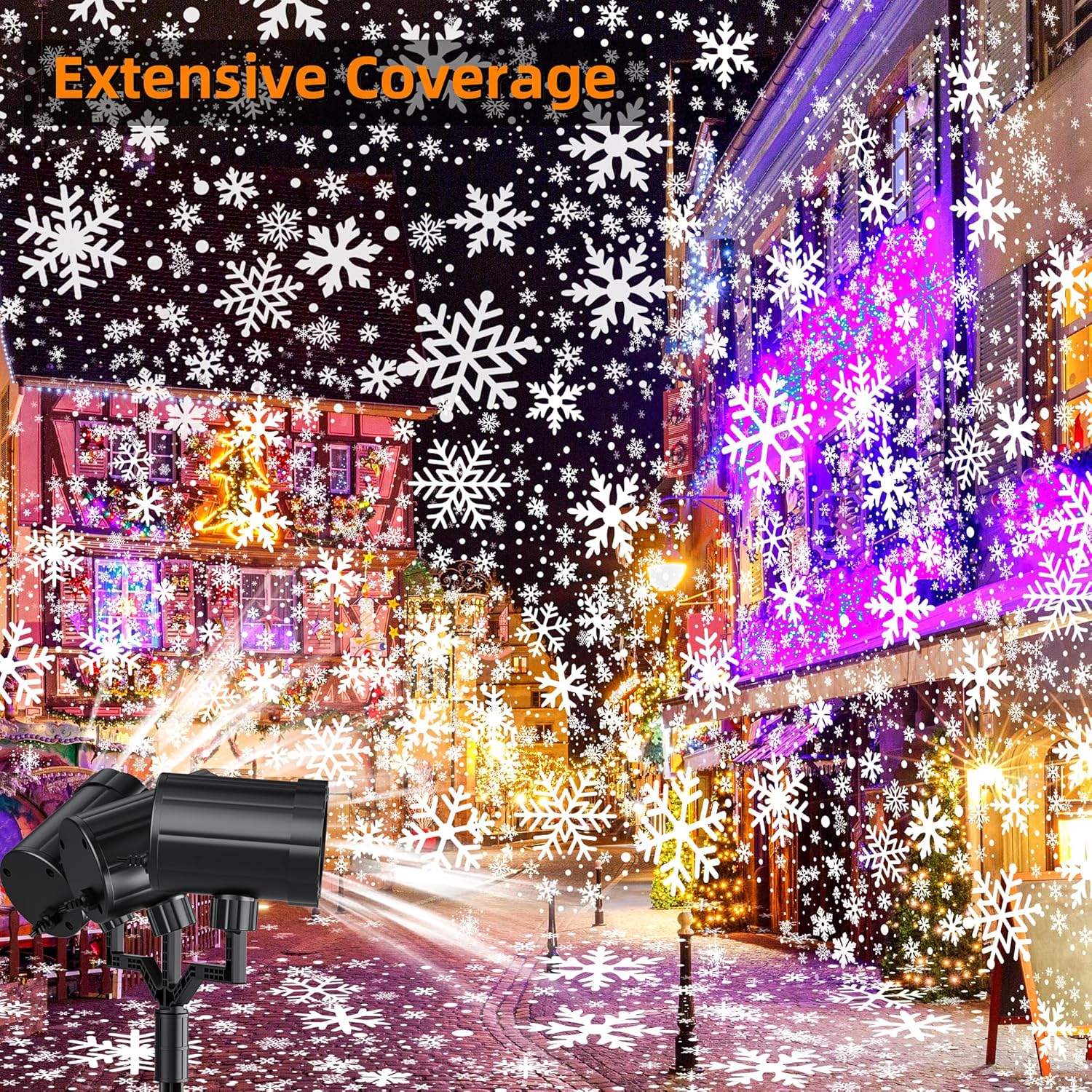 Suitable for All Seasons: The snowflake projector has an IP65 waterproof rating, is equipped with an IP44 waterproof plug, and features a high-quality plastic housing that provides superior protection against rain, snow, Note: keep plugs and sockets dry