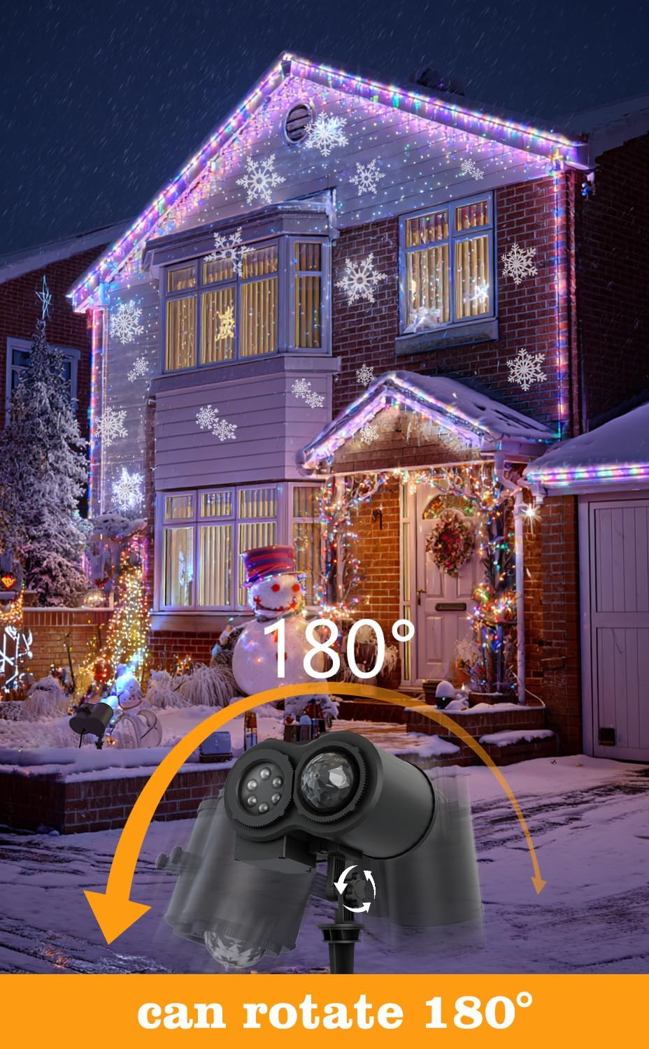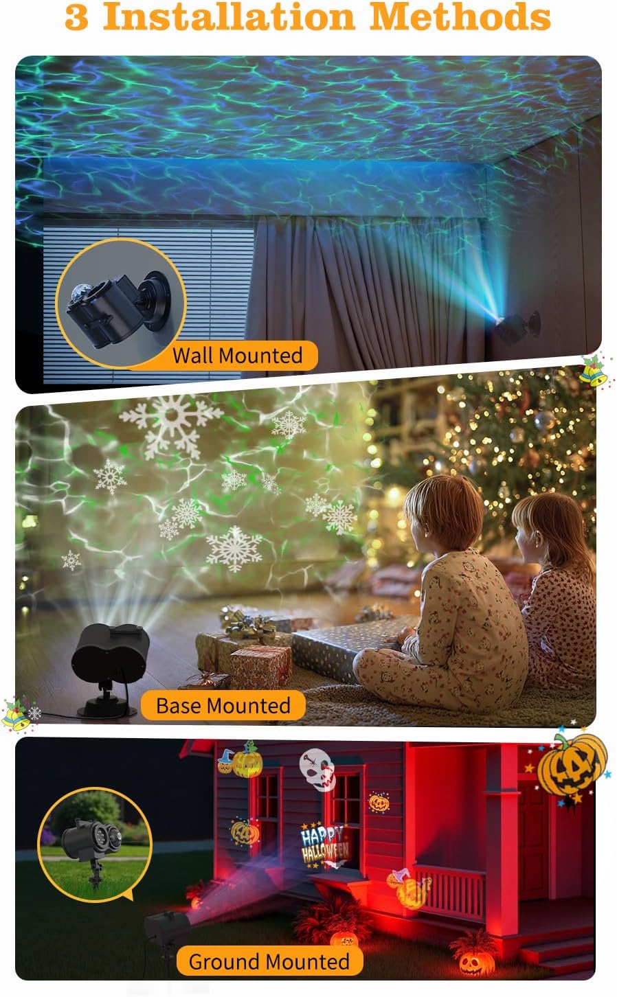 Energy-Efficient & The Perfect Gift for Every Celebration: Snowflake projector lights automatically shut off after 8 hours of operation, saving energy and ensuring safety with post-party power cutoff. Ideal for year-round celebrations like Halloween, Christmas, Thanksgiving, Valentine’s Day, snow themes, birthdays, and garden parties—wow guests and neighbors with dazzling light displays. Doubles as a water wave night light for daily bedroom or poolside decor