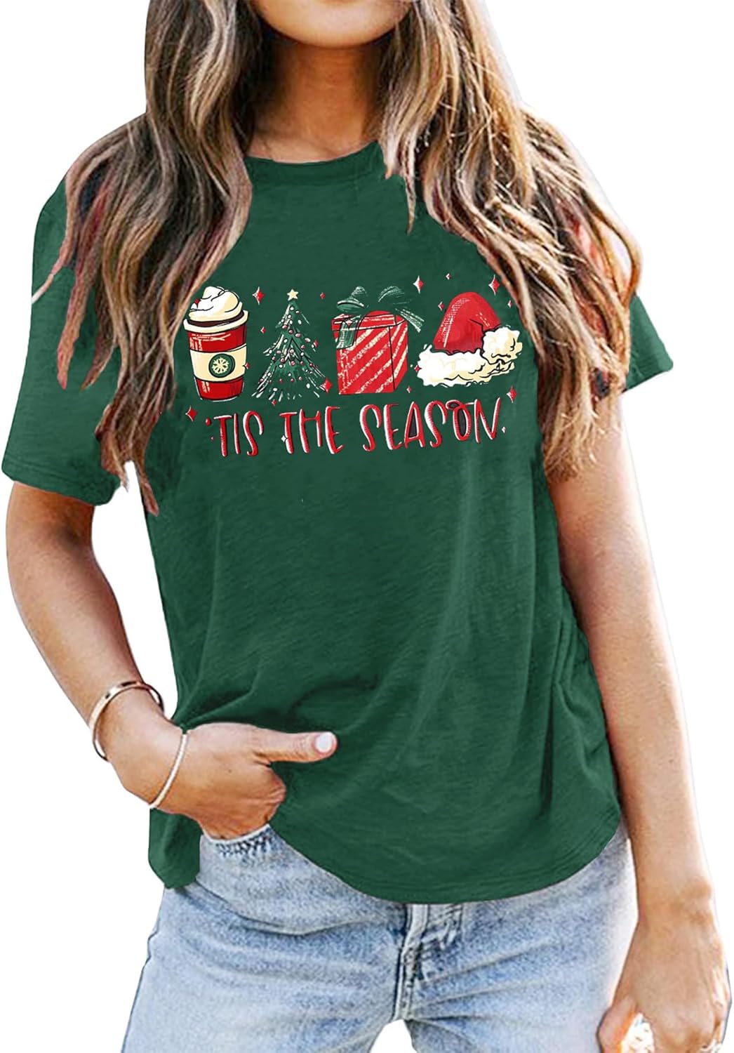 Womens Christmas Tops Funny Christmas Shirt Loose Fit Xmas Short Sleeve