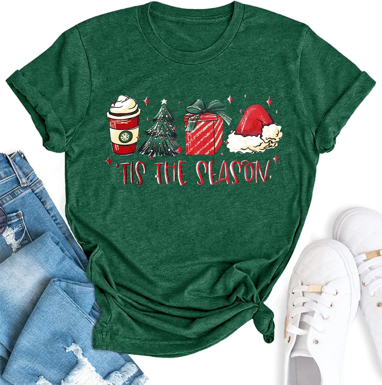 Various Christmas shirts, and basic tops for the holiday month. Here are rich graphics for your choice.