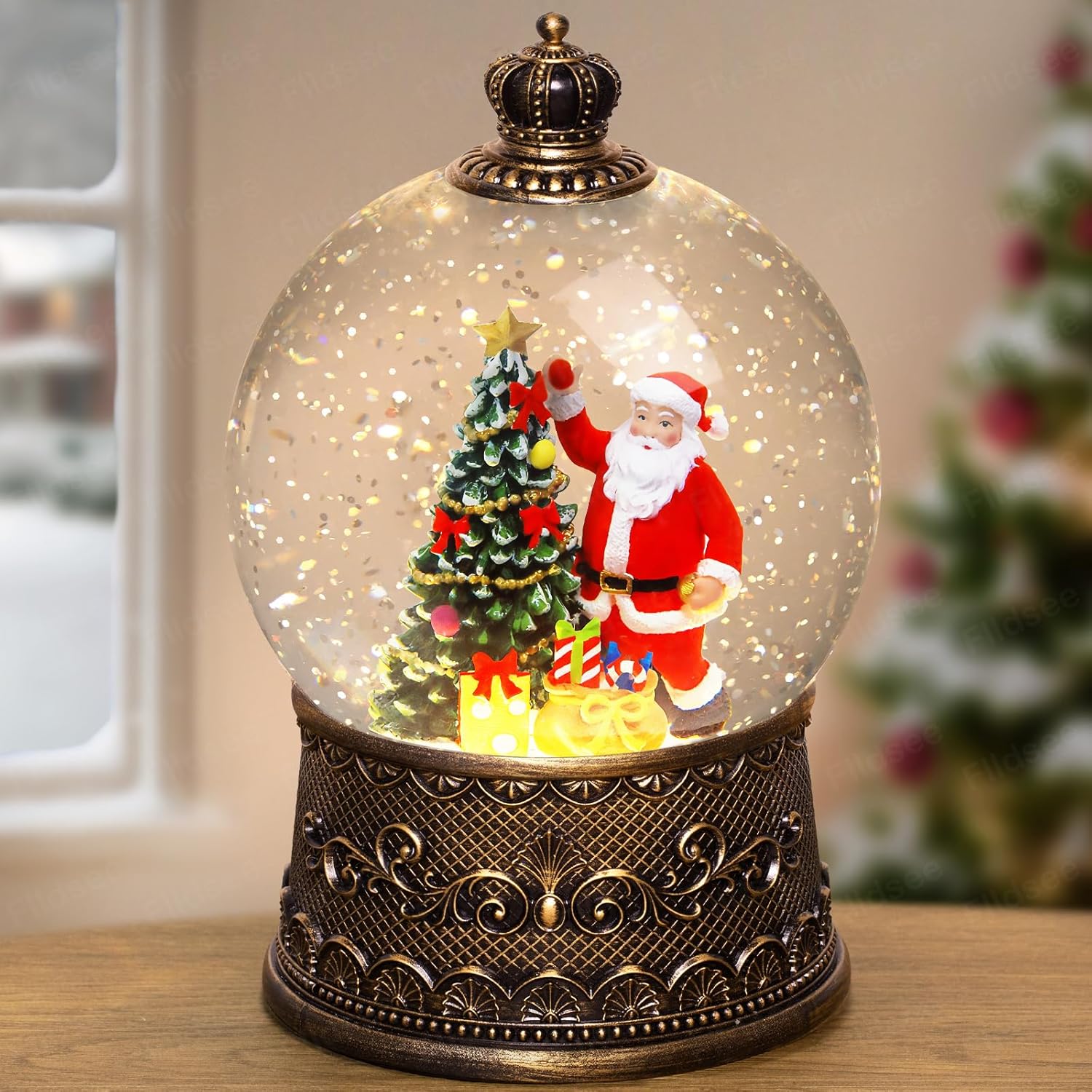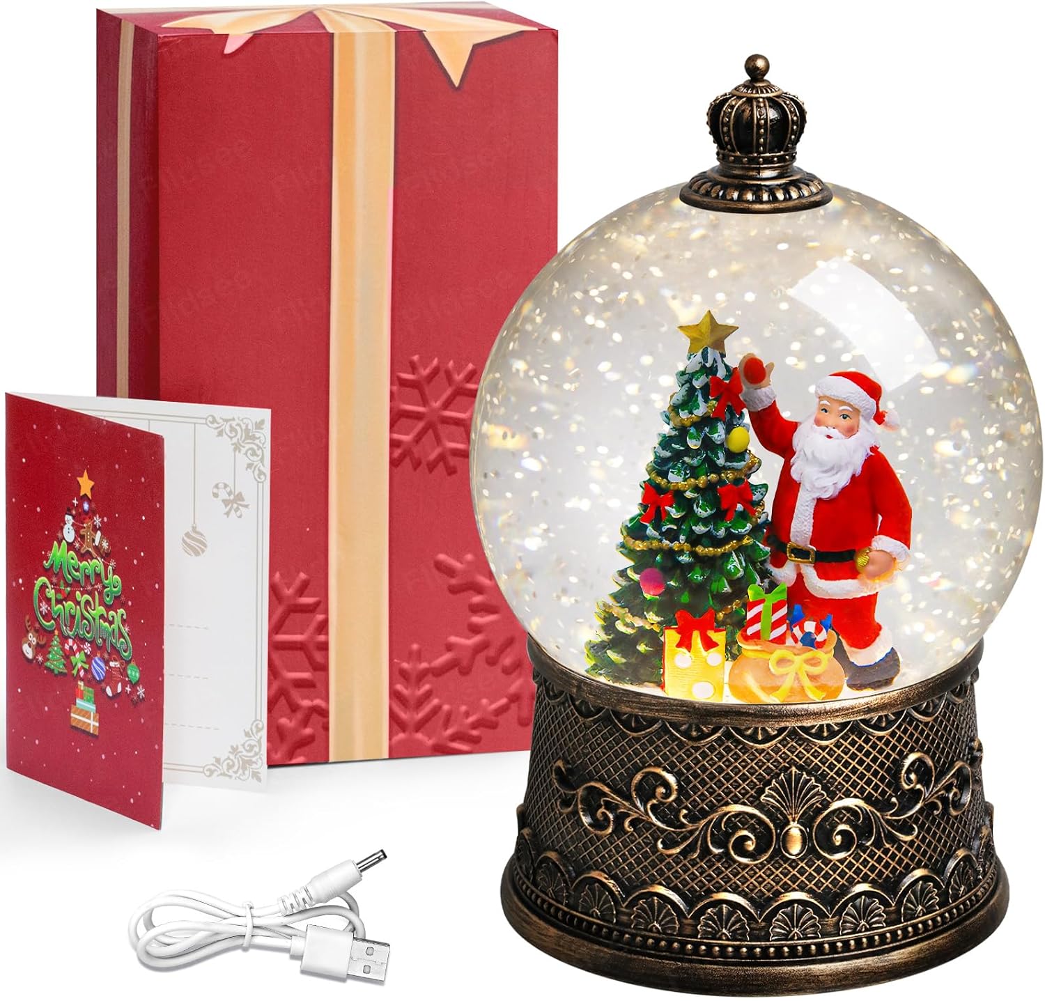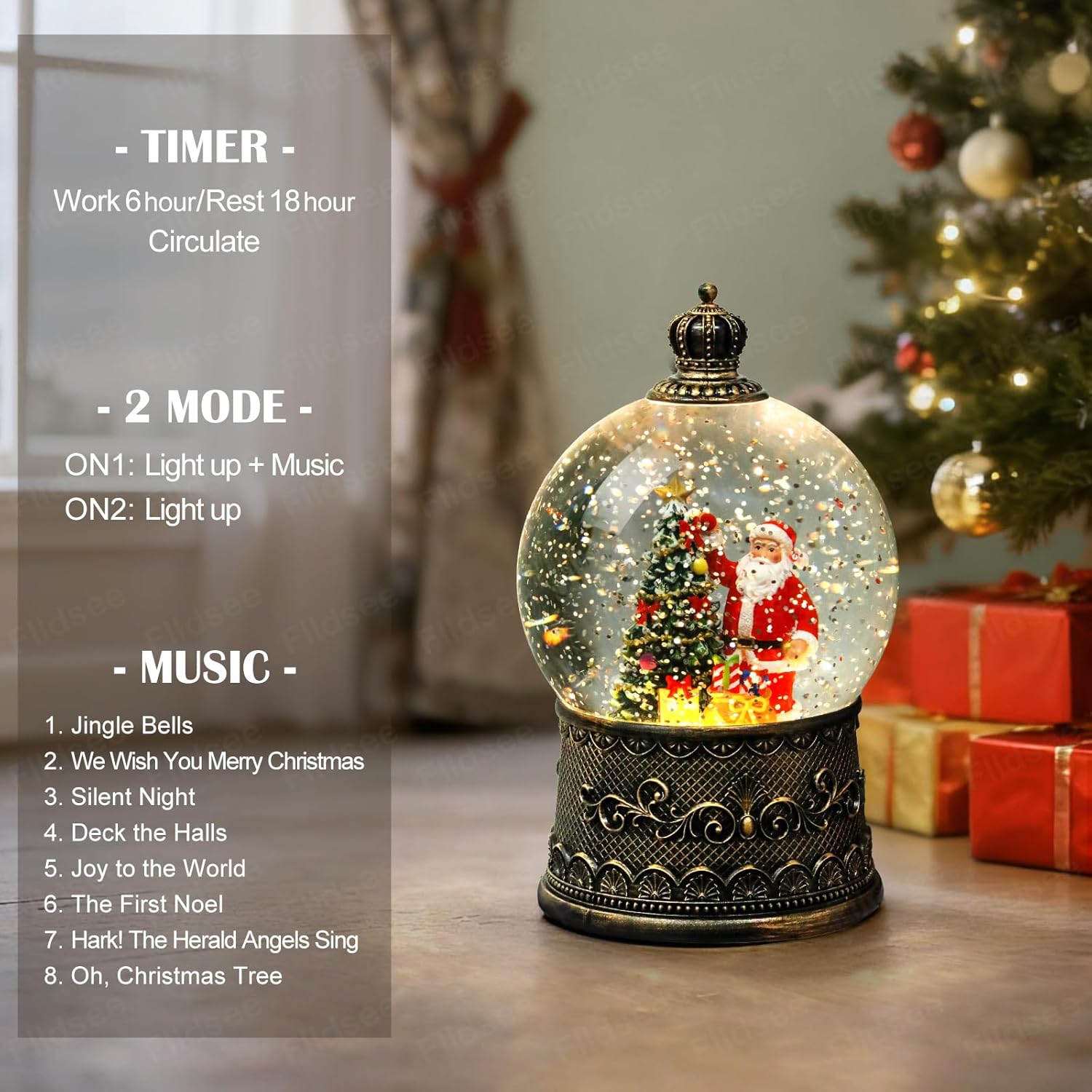 Flldsee Christmas Snow Globe Lantern, Glitter Musical Snowglobe Light with Timer, USB & Battery Powered Music Box, Santa Claus Christmas Tree Gifts, Holiday Decorations Indoor Home Decor