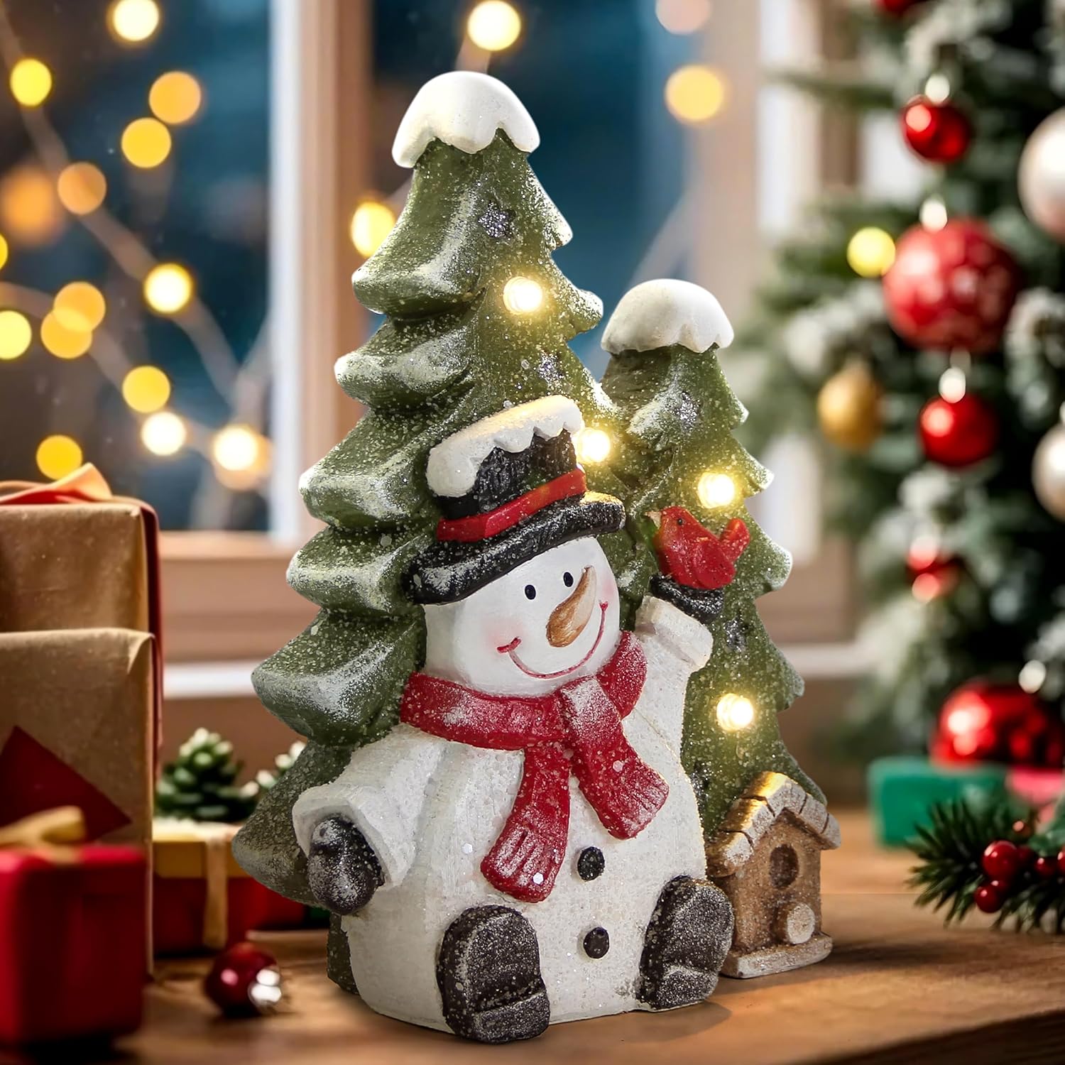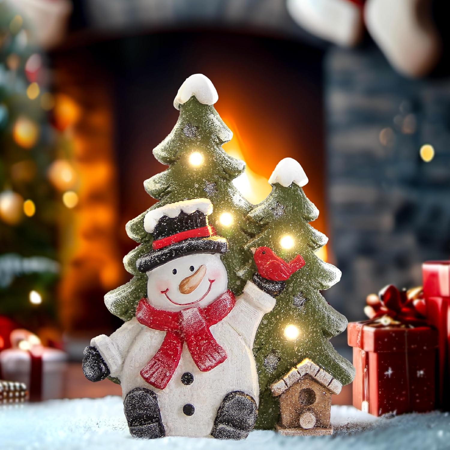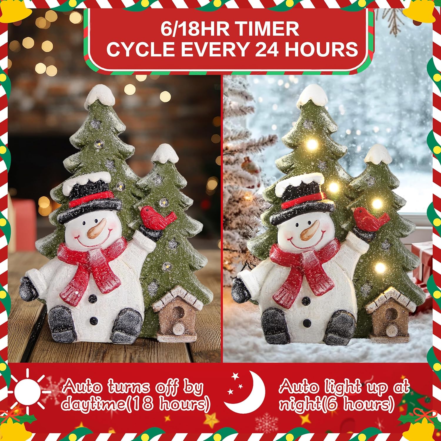 Christmas Snowman Decor with Led Lights,Snowman Statues and Figurines for Indoor Christmas Decorations,Winter Holiday Xmas gifts for Women,Xmas Statues with Timer for home Office Table Shelf Fireplace