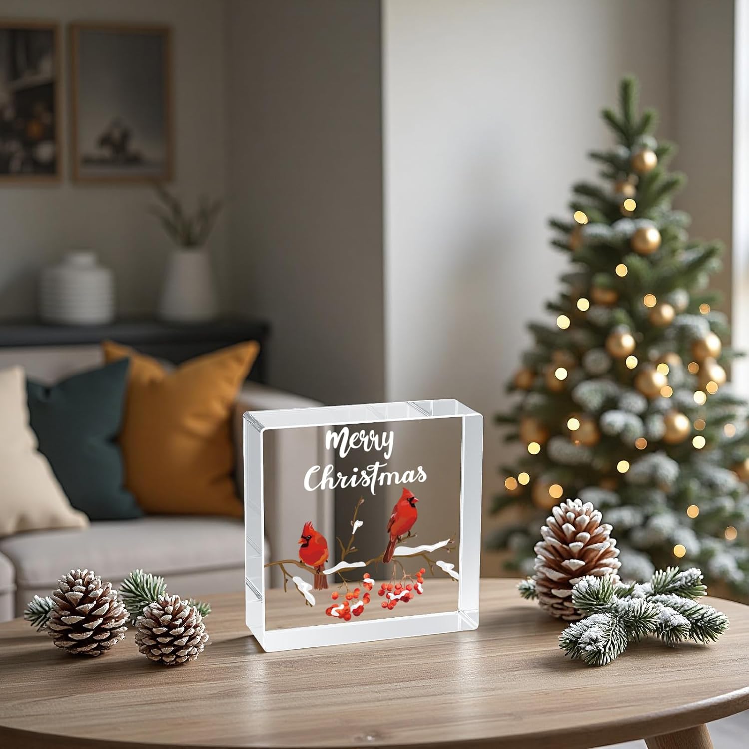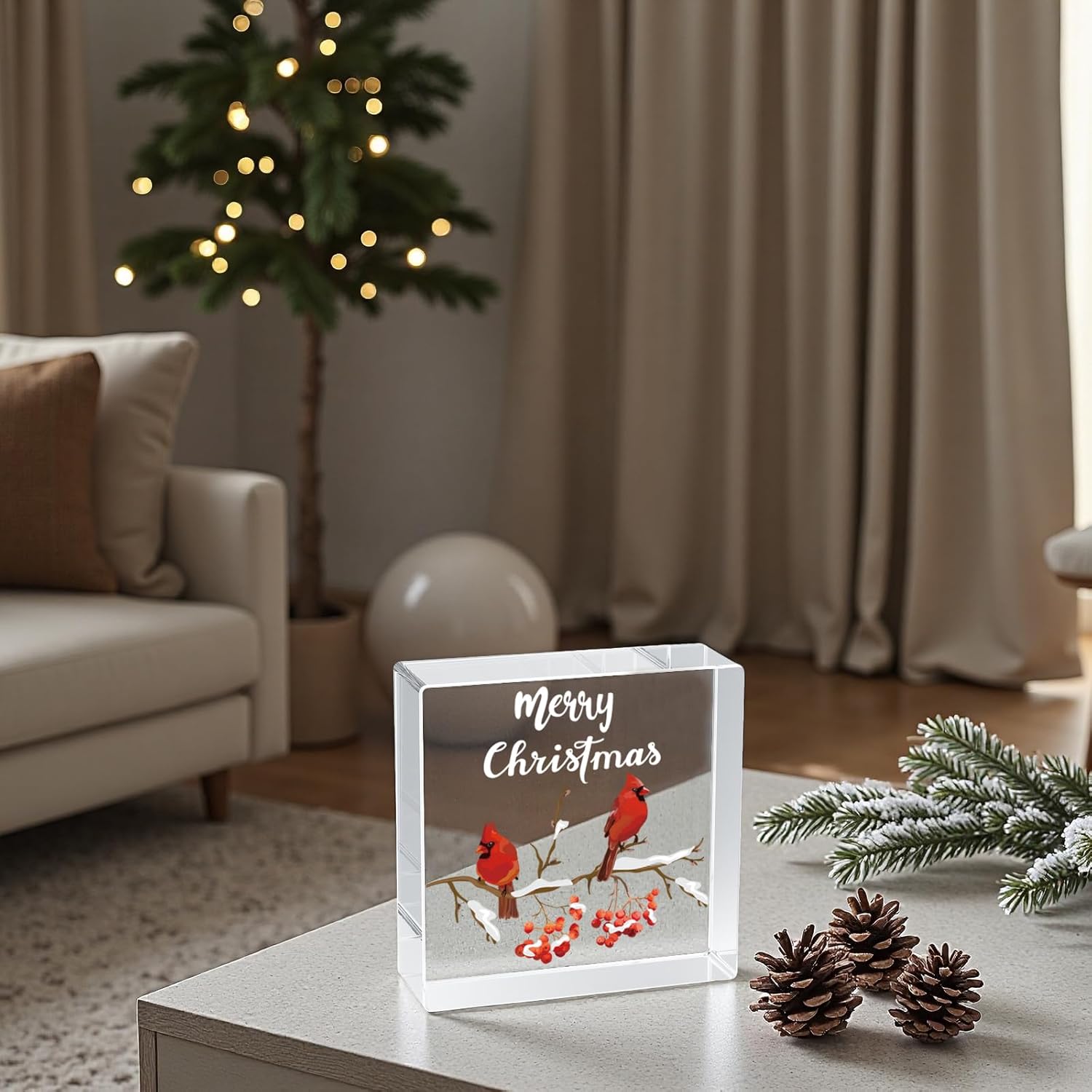 Christmas Table Decorations Christmas Decor Indoor Home Room Cardinals Office Bathroom Acrylic Sign Rustic Shelf Desk Decor Season Sign House Warming Gifts 4.5 x 4.5 Inch