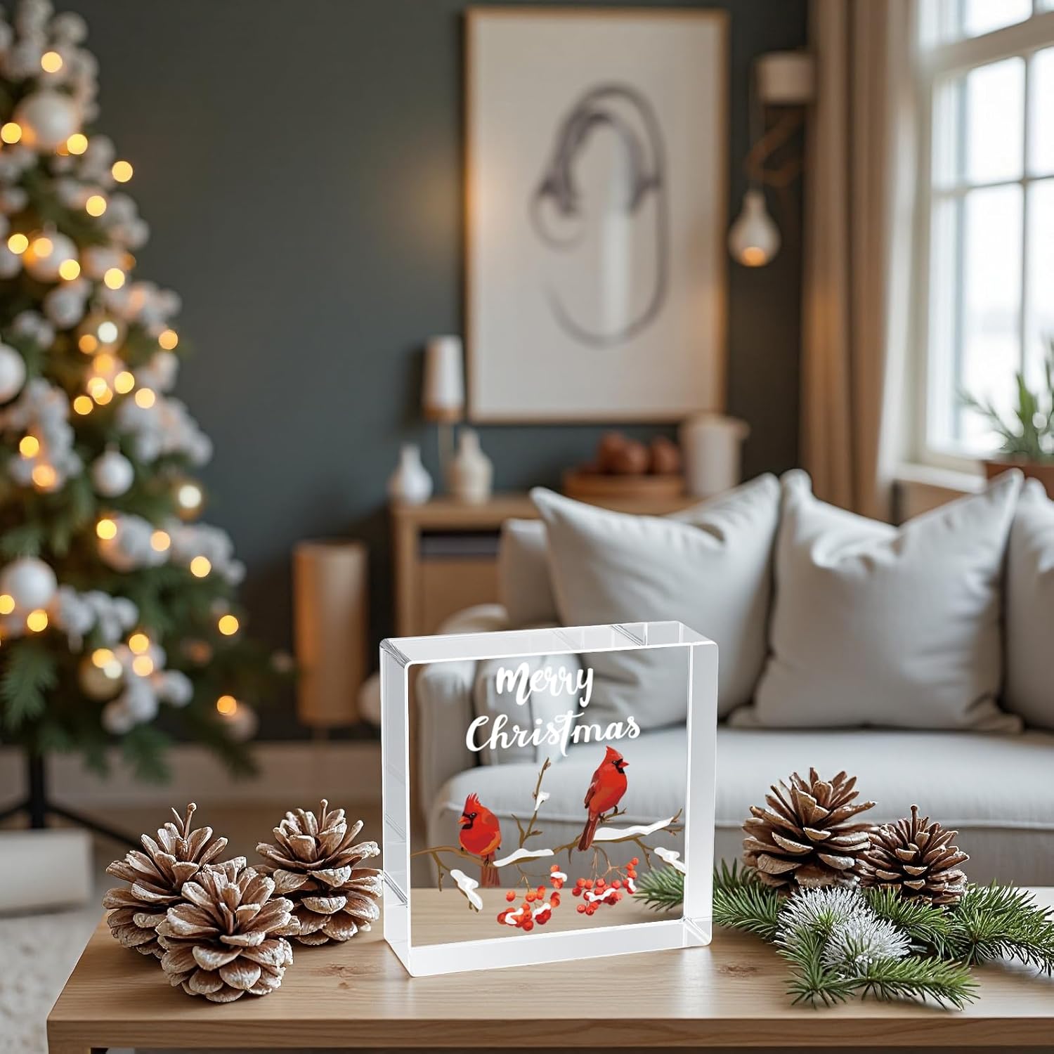 Christmas Table Decorations Christmas Decor Indoor Home Room Cardinals Acrylic Sign Rustic Shelf Desk Decor Season Sign House Warming Gifts 4.5 x 4.5 Inch