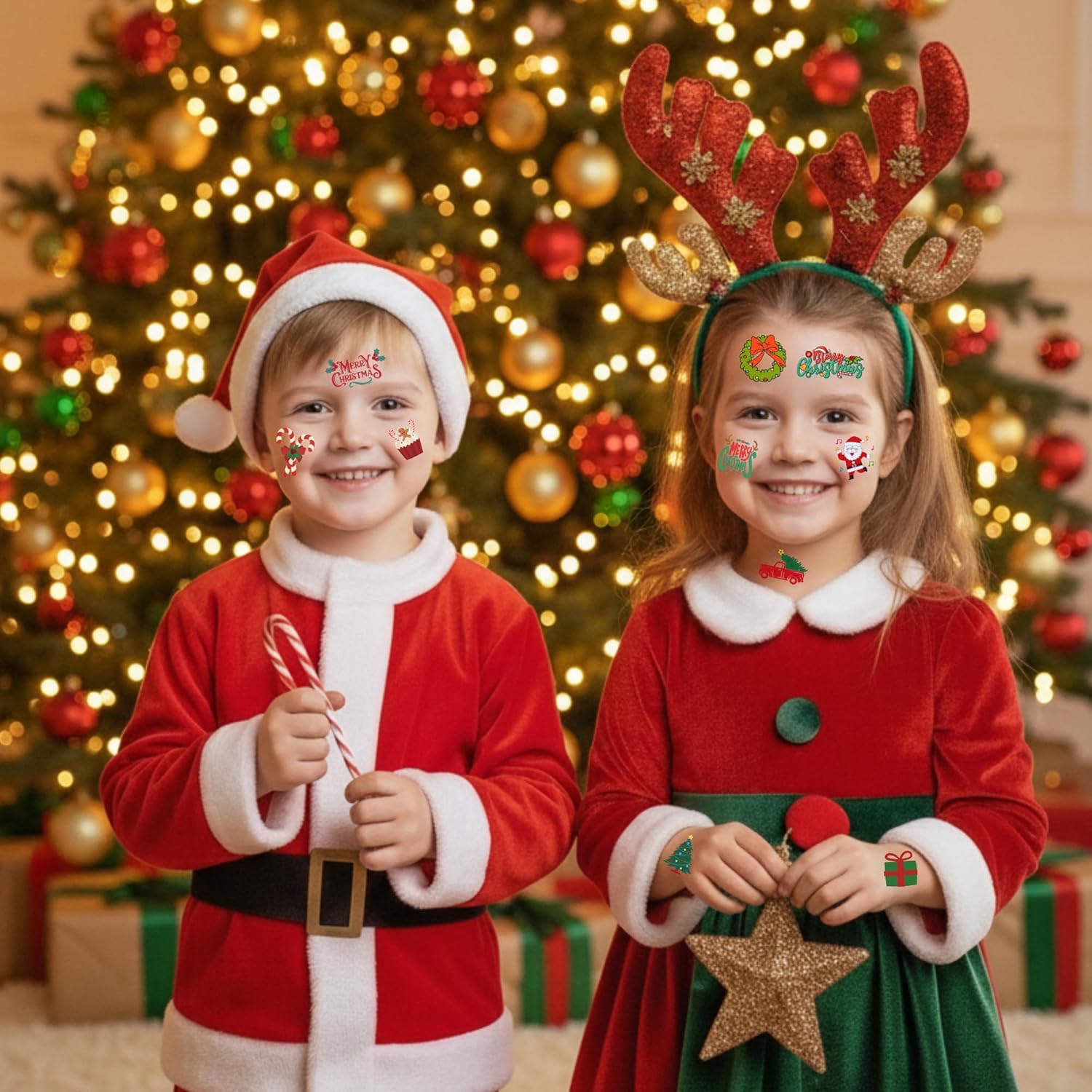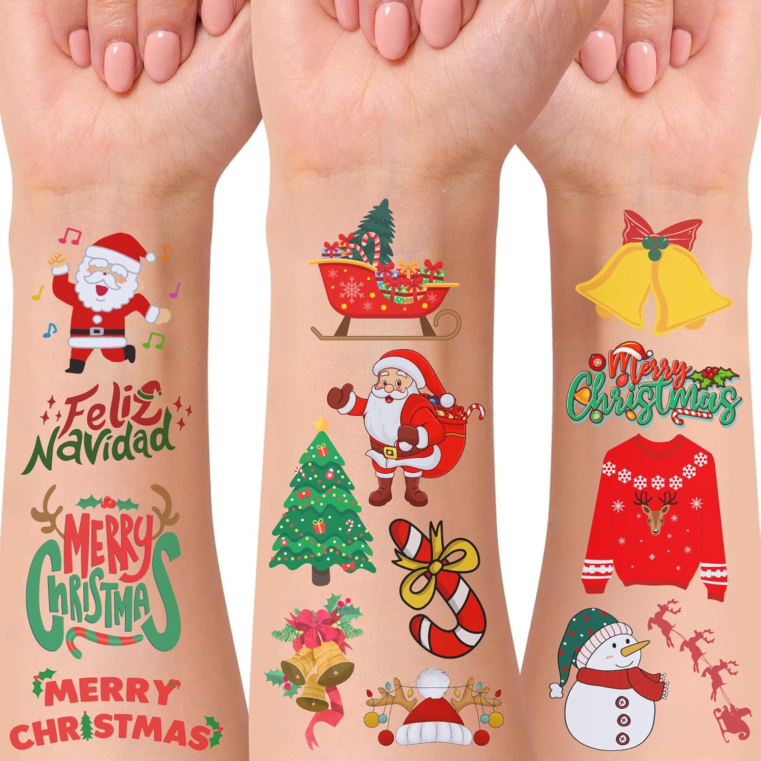 Christmas Accessories: Complete your holiday look with our charming temporary tattoos as essential Christmas accessories. These fun tattoos can be worn by guests of all ages, allowing everyone to join in on the holiday festivities and celebrate the season together.
