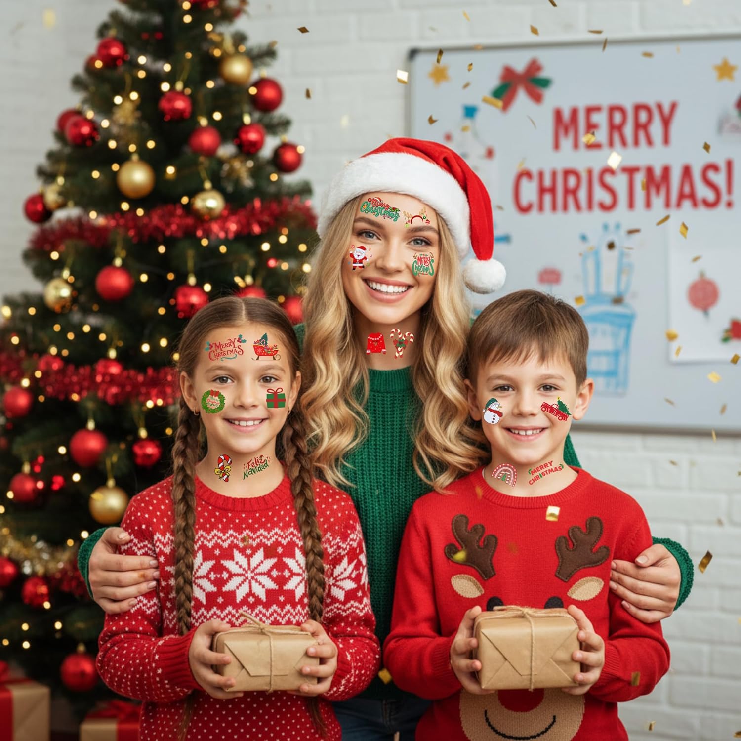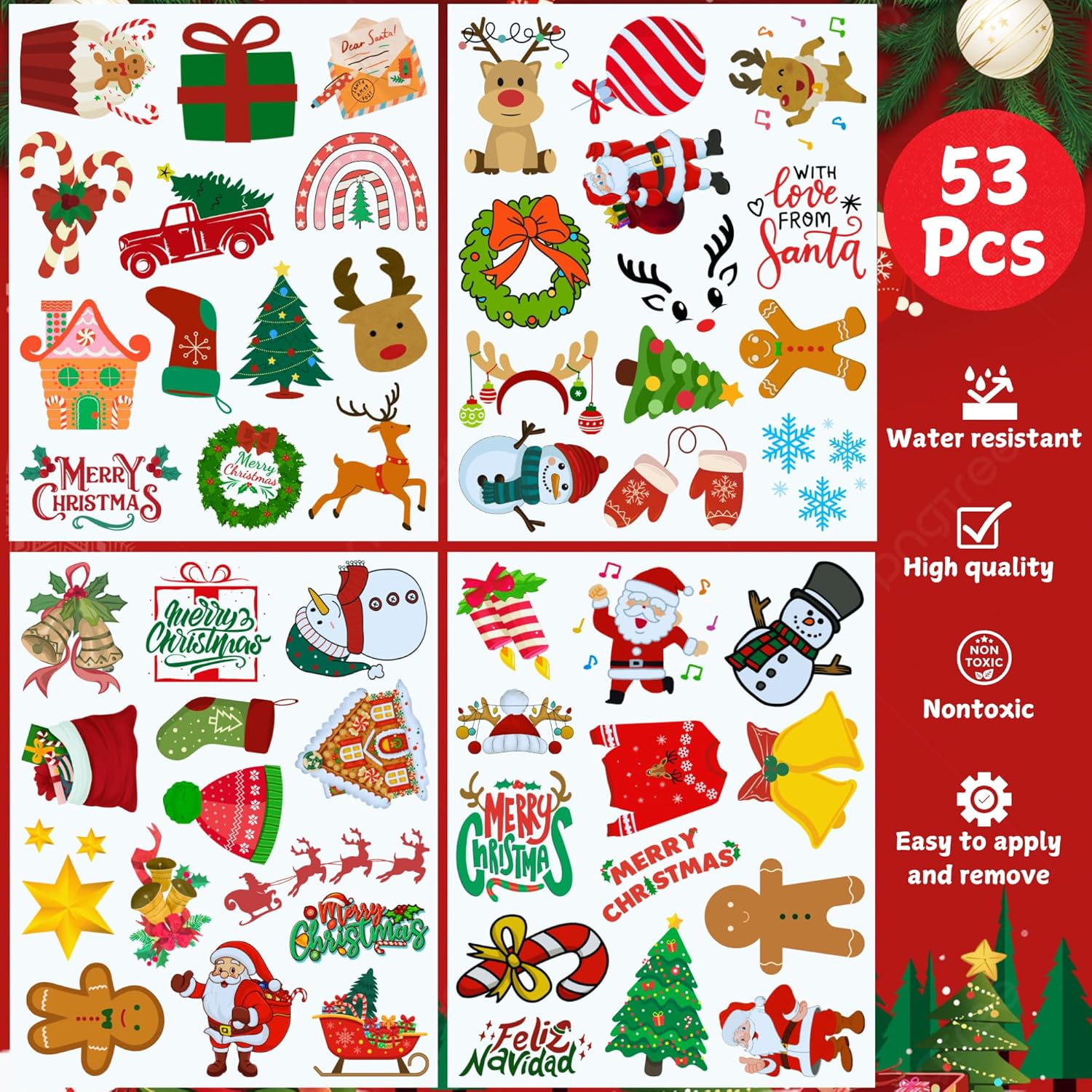 Christmas Decorations: Enhance your Christmas decorations with our colorful temporary tattoos, which can be creatively displayed around your venue. These festive designs add a playful touch to your decor, making your space feel even more cheerful and inviting.