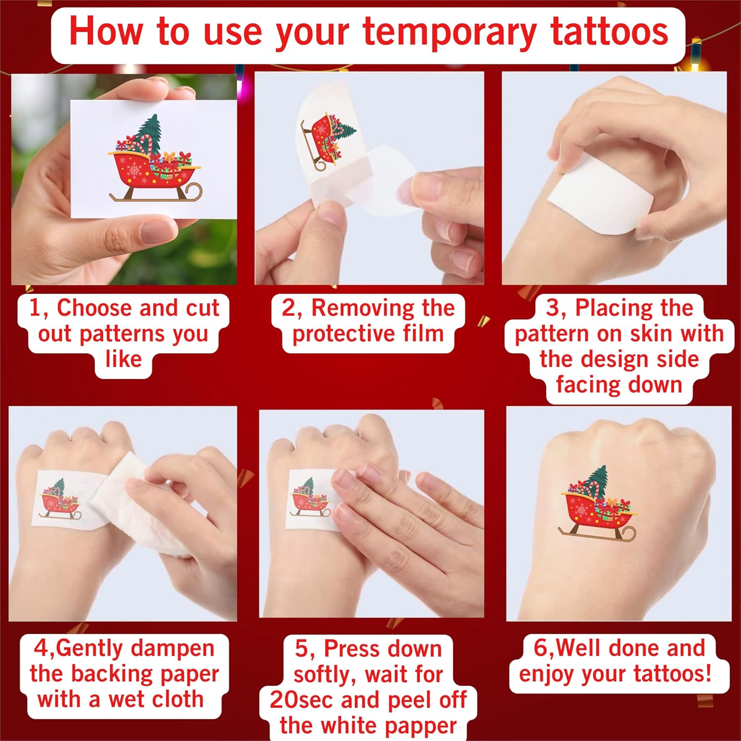Christmas Party Favors: Our temporary tattoos are an choice. They are easy to apply and come in a variety of festive designs, ensuring your guests leave with a memorable keepsake that captures the spirit of the season.