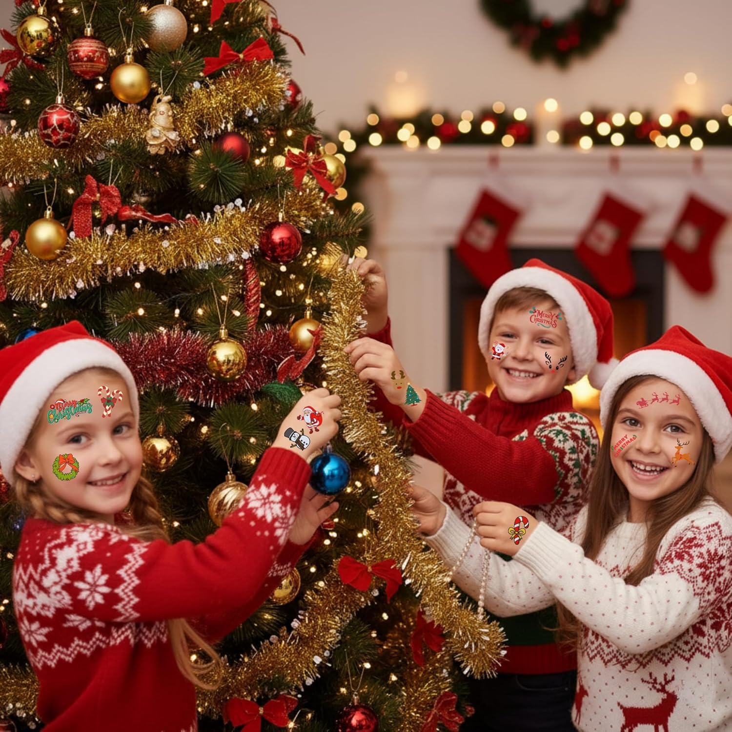 Christmas Accessories: Complete your holiday look with our charming temporary tattoos as essential Christmas accessories. These fun tattoos can be worn by guests of all ages, allowing everyone to join in on the holiday festivities and celebrate the season together.
