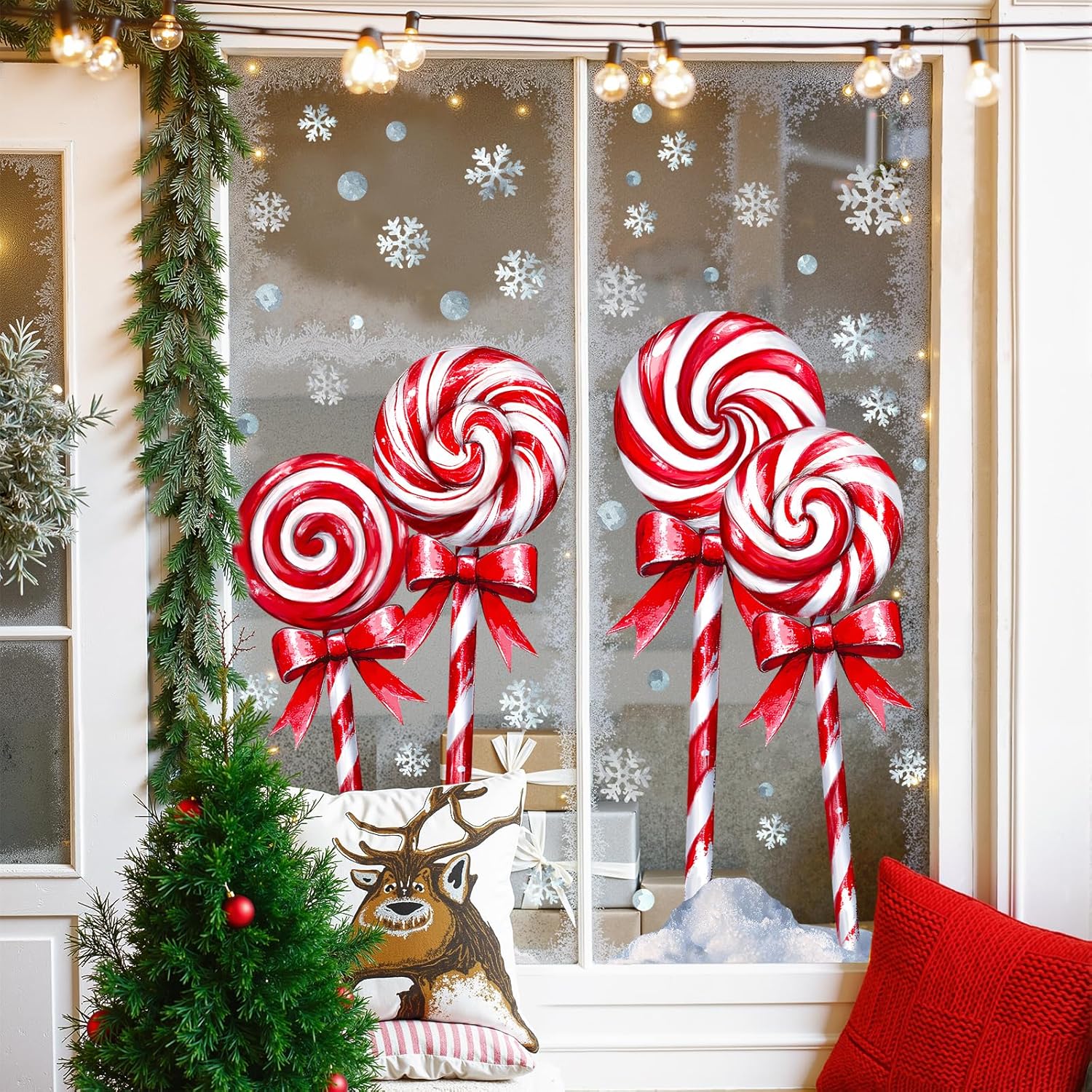 GOOD QUALITY: The cute peppermint lollipop Xmas window stickers are made of premium PVC, double-sided printed. Weather-resistant and durable. Bring out stunning festive atmosphere to your Christmas decorations indoor.