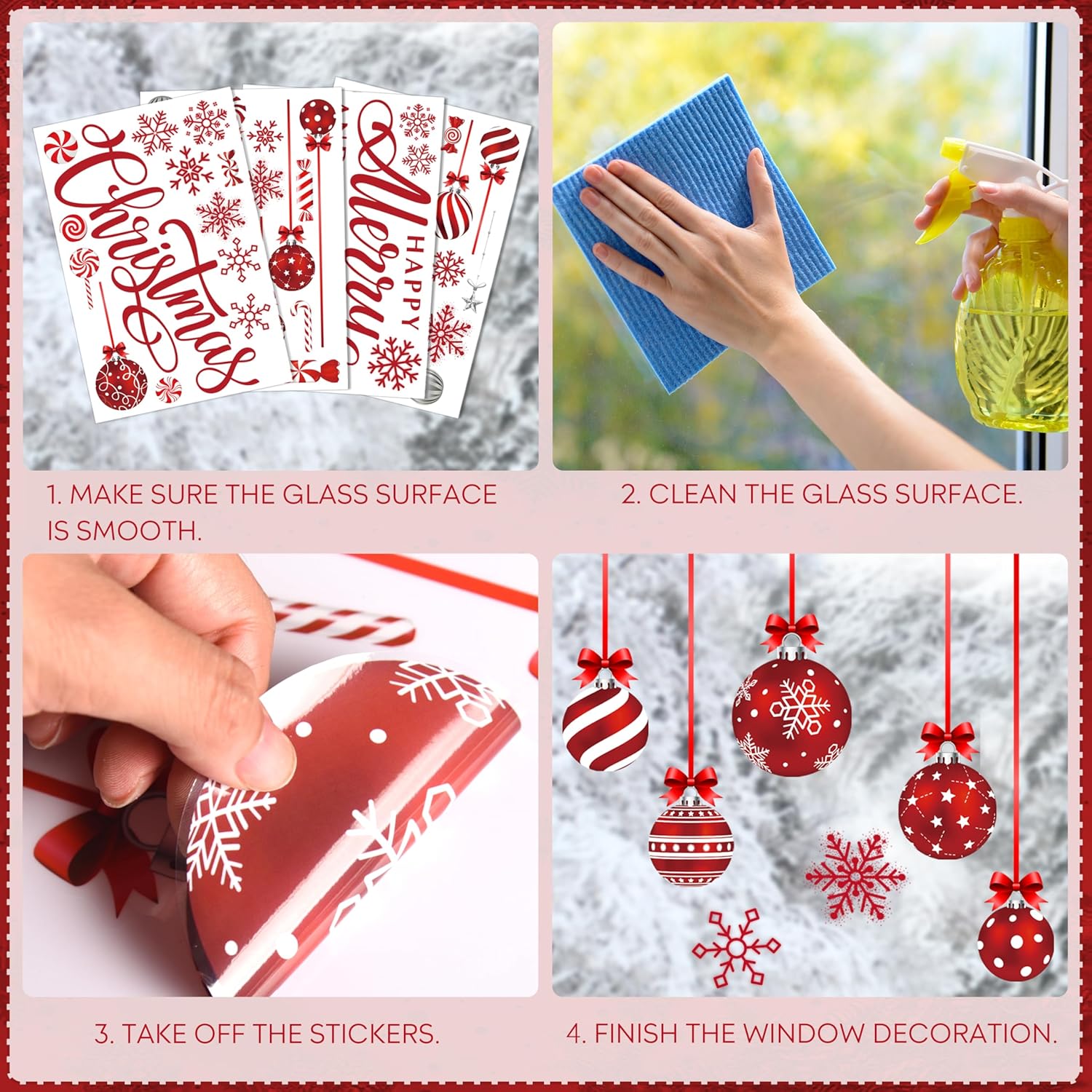 CHRISTMAS BALL WINDOW CLINGS — Christmas window stickers are double-printed, they can be clearly seen from indoor or outdoor. The packaging includes 4 brightly colored Christmas ball window clings measuring 17.7 x 11.8 inches.