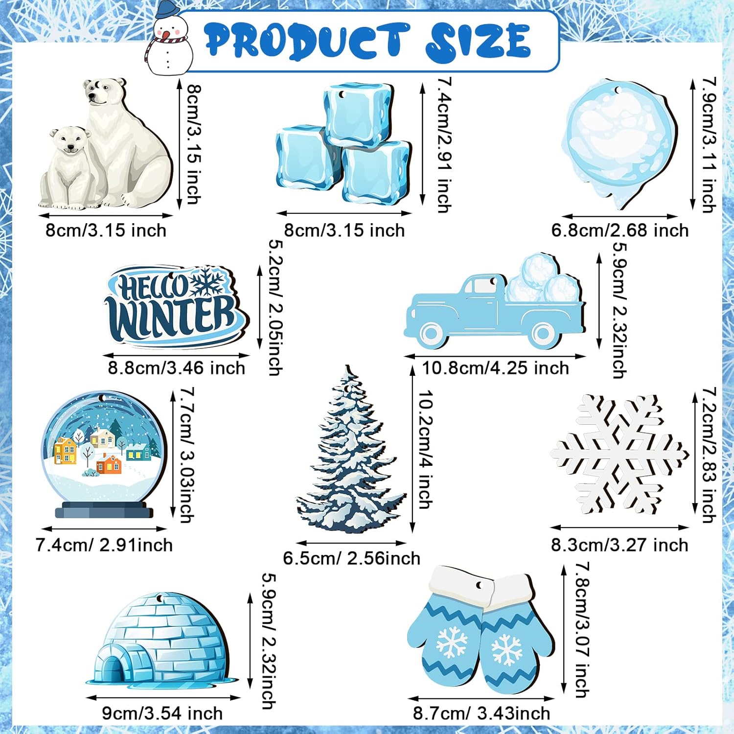 Vivid and Lovely Patterns: these wooden hanging ornaments are printed with winter themed elements such as car, tree, bear, snowflake and more; Vibrant colors help add to the festive mood