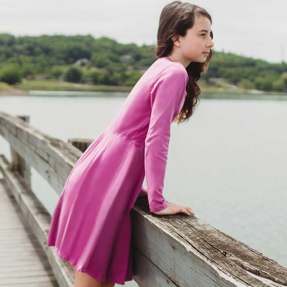 Customers find the dress fits true to size with a full skirt, and appreciate its high-quality construction, cute style, and solid color that pairs well with various shoes. They describe it as super soft and comfortable, with one customer noting it’s particularly suitable for children with sensory issues. The material receives mixed feedback – while some praise the fabric, others mention it’s very thin and doesn’t hang well.