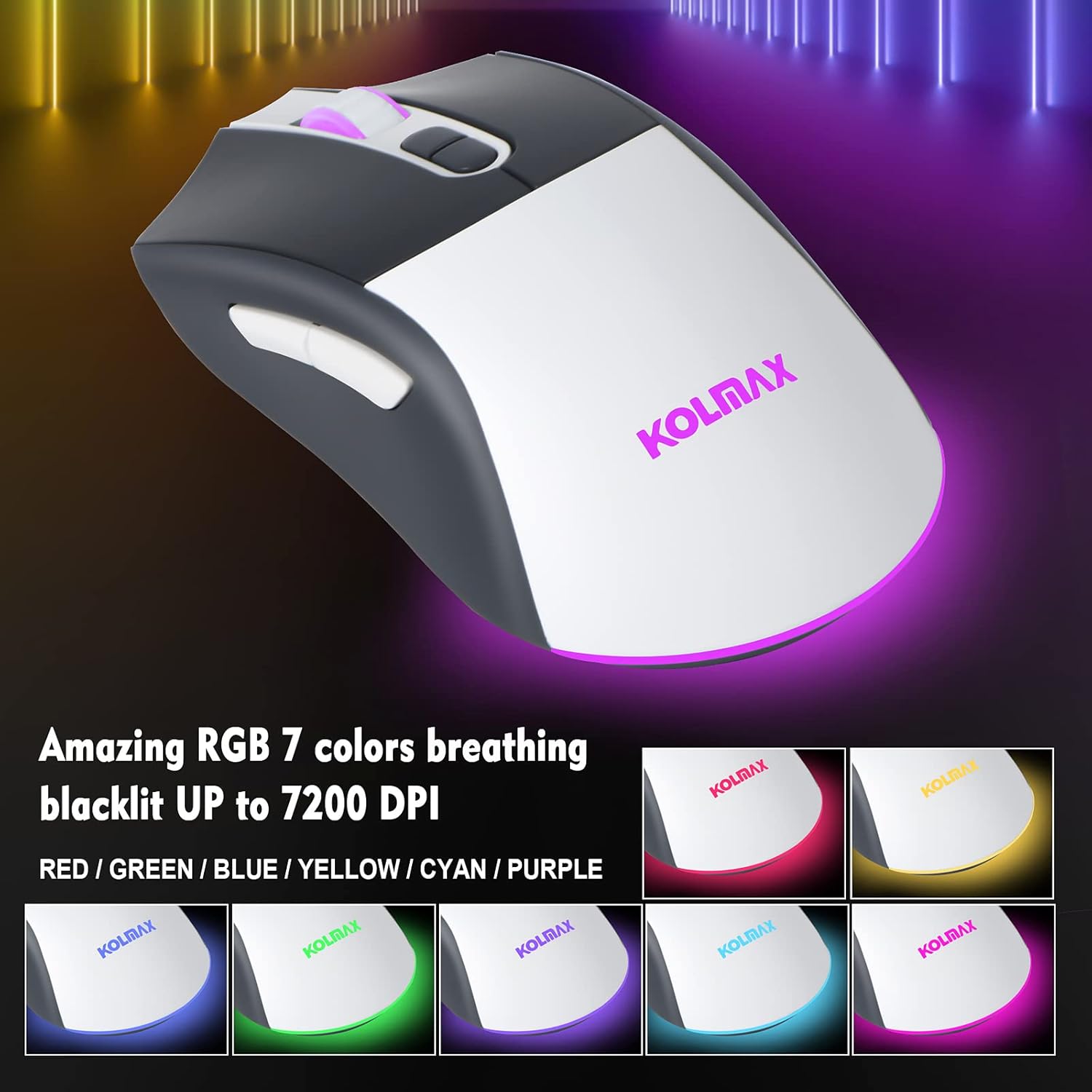 【Wireless Gaming Mouse】This gaming mouse with 7 color auto- changing breathing backlight and 4 DPI levels available(1200-1600-2400-3200) high-precision positioning game engine and stable transmission. Can easily adjust to match the mouse speed instantly for different game scenarios.make using more flexible and accurate,and it is made of high quality ABS material and ergonomic housing,ensure a comfortable using for a long time without fatigue,It also have Light switch to Turn On/Off the backlight
