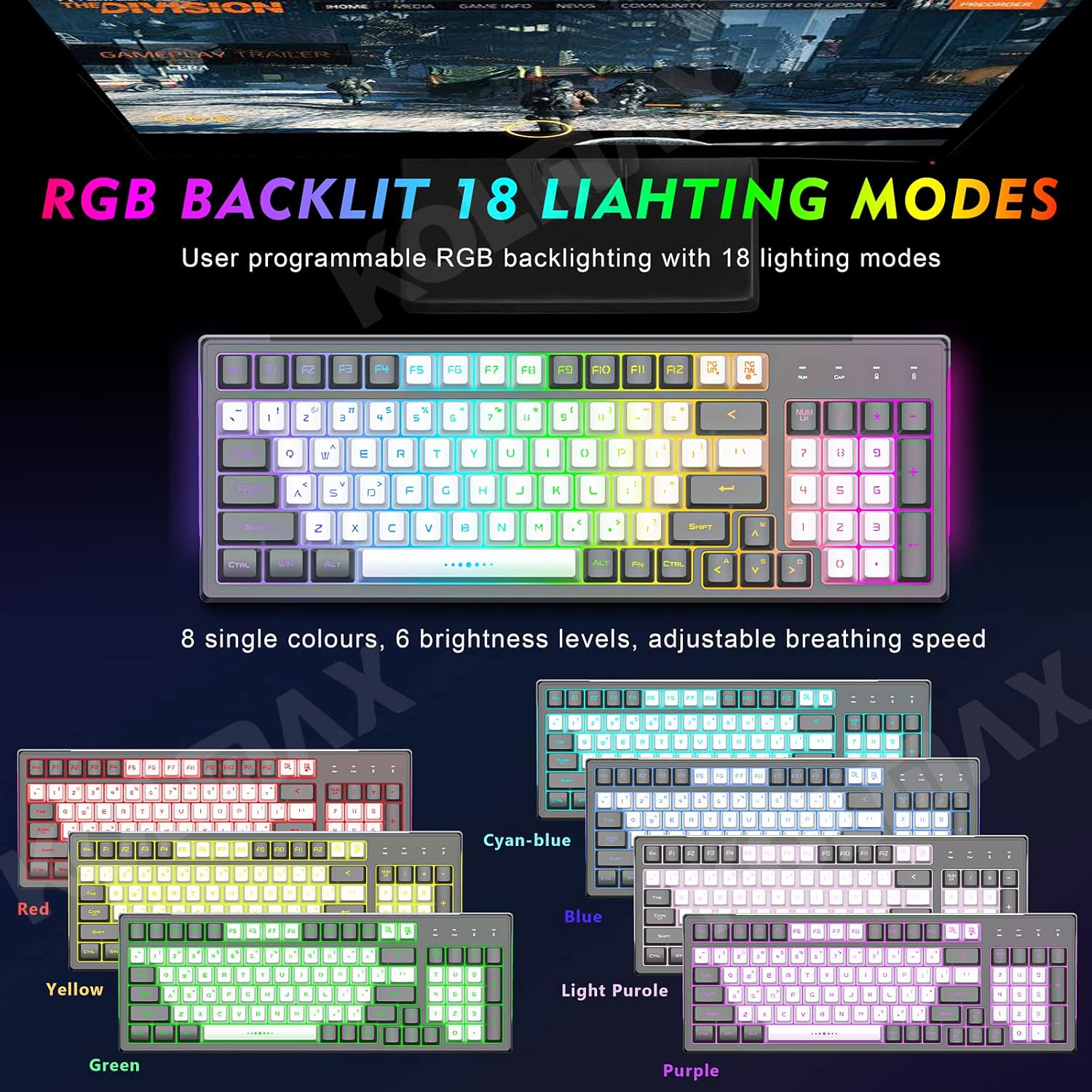 CK98 Wireless Gaming Keyboard and Mouse Combo,Rechargeable RGB Grey Gaming Keyboard RGB Backlit 98 Keys Mechanical Feeling Dual Color Keyboard and Gaming Mouse 3200DPI for PC Mac Gamers(GreyWhite)