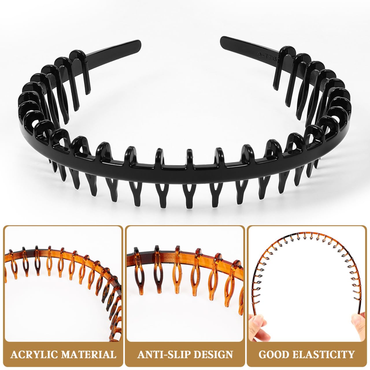 These lightweight plastic headbands keep your hair secure and stylish. These bands effortlessly hold hair in place for workouts, workdays or casual outings with hark tooth comb design. The unisex design combines practicality with a sleek, contemporary look.