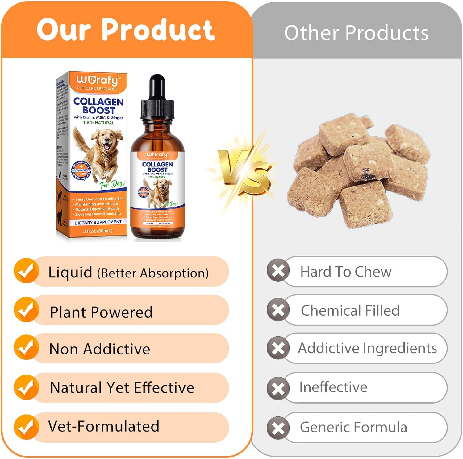 Easy-to-Give Liquid Form: Fast-absorbing and convenient! Our Liquid Collagen for Dogs simply give directly or mix into food or water. A perfect daily supplement to help your dog thrive.