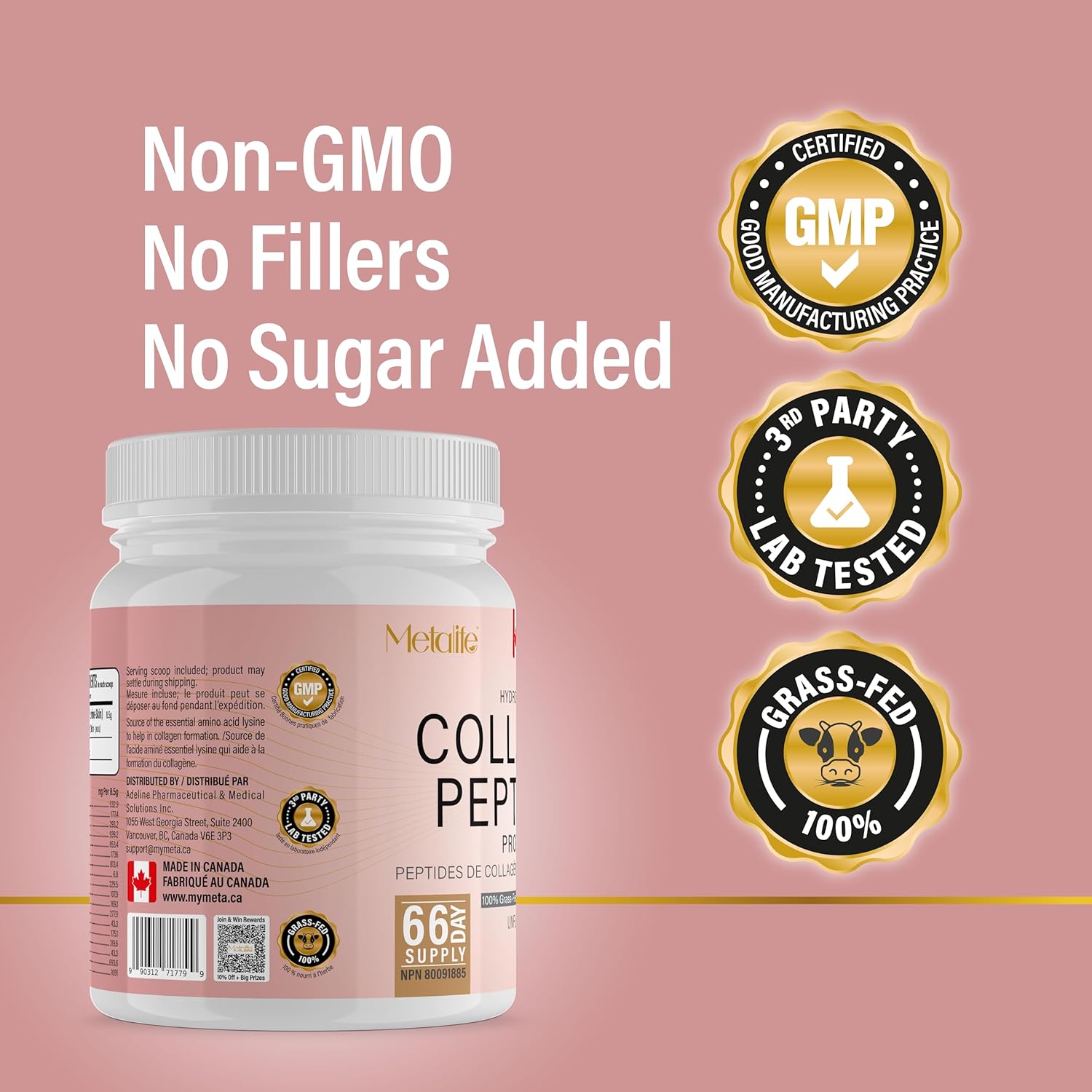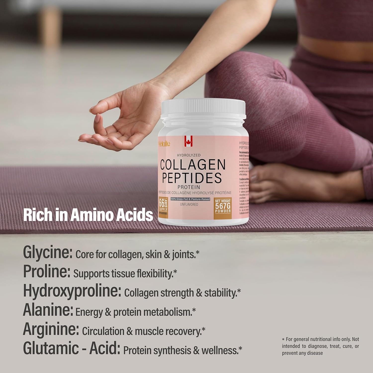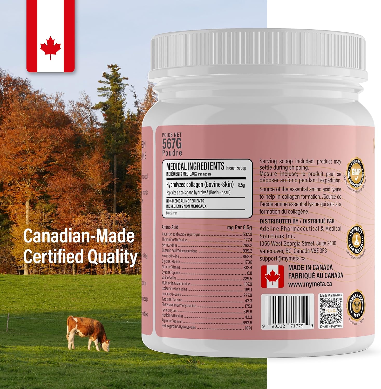 Collagen Powder 567g, 66 Servings, Hydrolyzed Collagen Peptides, Grass-Fed Bovine, Unflavored, Made in Canada, Supports Joints, Skin, Hair & Nails, Protein Supplement for Women & Men