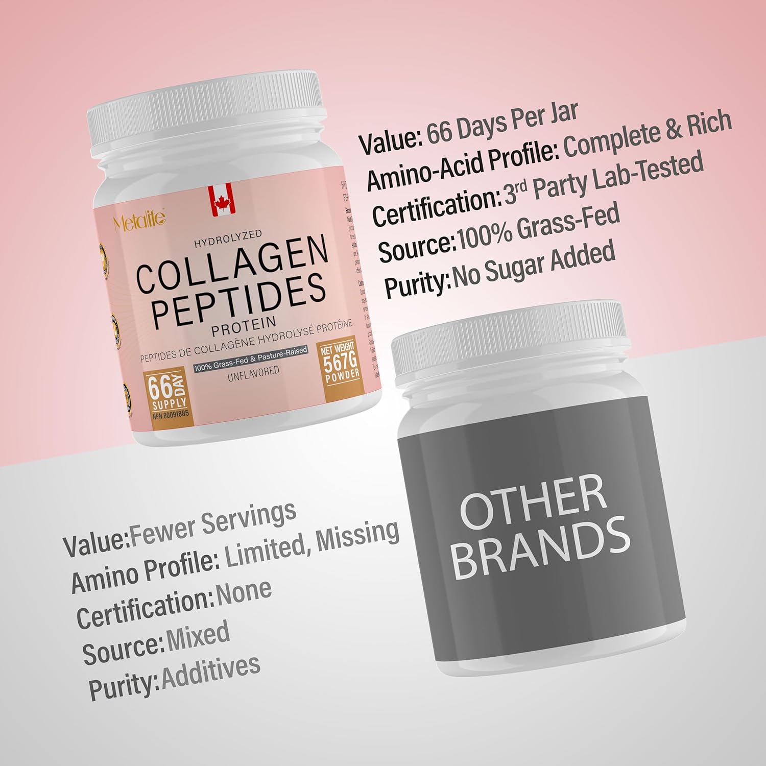 4️⃣ Visible Benefits You Can Count On: Daily use is the key to results. Most customers notice the first signs within 8–16 weeks: Metalife collagen help stronger nails, smoother skin, shinier hair, and better joint comfort. Collagen peptides work gradually to replenish what your body loses with age—helping you look and feel revitalized from the inside out. Backed by science, our collagen for joints and skin is supported by the natural power of amino acids for consistent results you can actually see and feel over time.