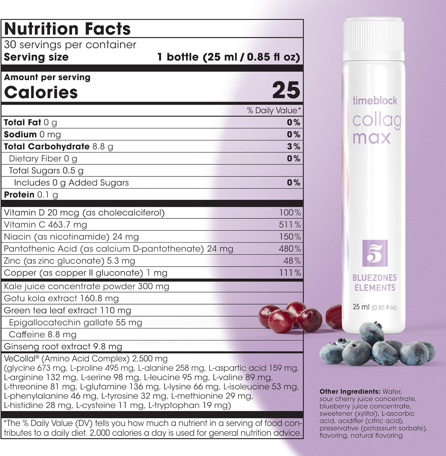 Supports Skin Elasticity and Smoothness: Helps reduce the appearance of fine lines, wrinkles, and pores; phytonutrients from kale, blueberry, and pomegranate support firmer, more radiant skin