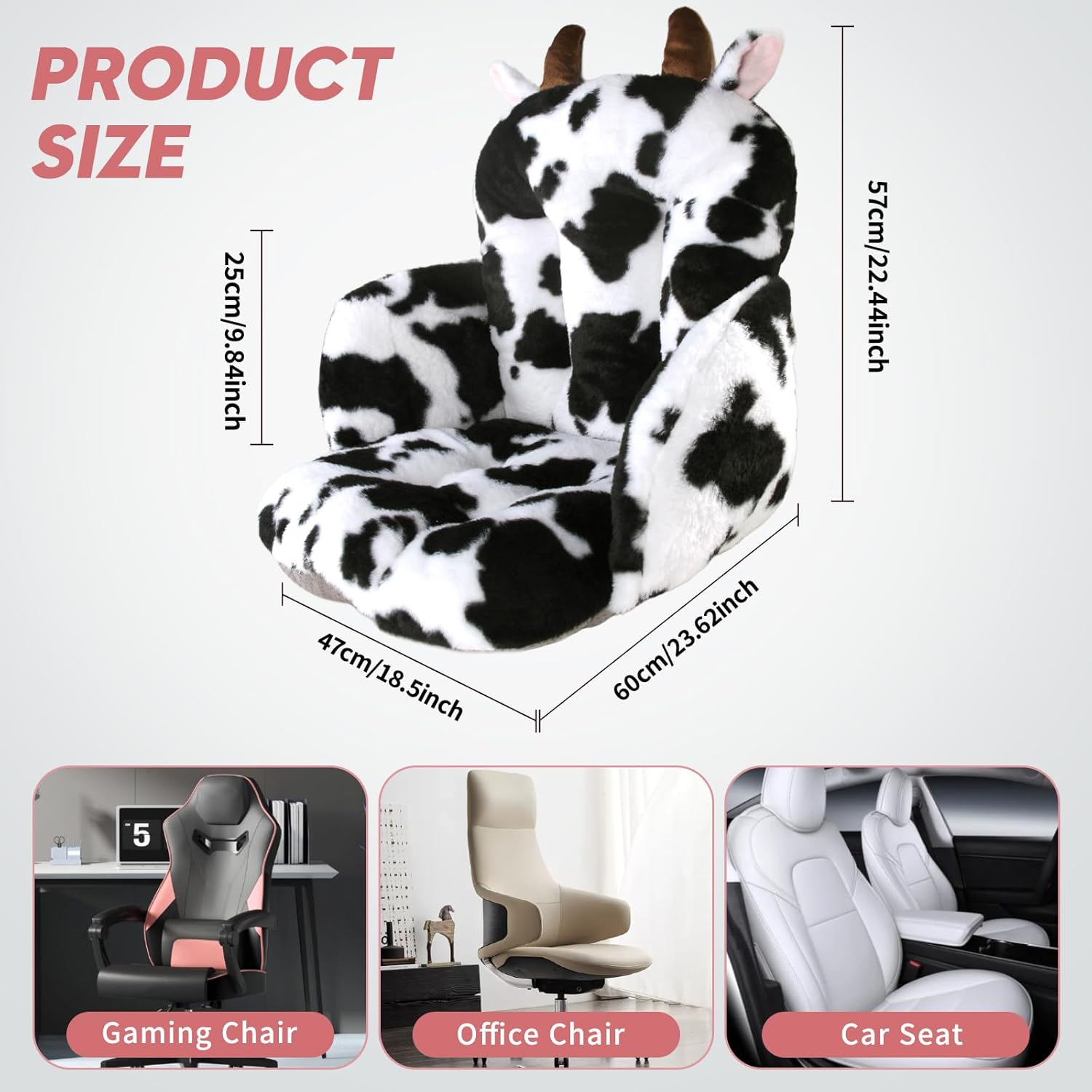 Comfy Office Chair Cushion: 17.5″ L x 17.5″ W x 18″ H Cute Seat Cushion Kawaii Cushion for Gaming Chair with Backrest Non-Slip Floor Seating for Adults and Pets Cow Stuff for Room Decor