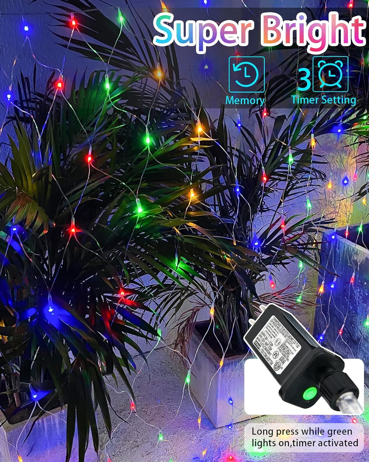 Timer & Memory Function: The bush mesh lights have 3 timer functions(6hrs on, 18hrs off; 18hrs on, 6hrs off; 6hrs on, 6hrs off, 3hrs on, 9hrs off), you can adjust and switch freely according to your own needs to save energy and money. Our net string lights also have memory function, Buit-in memory chip saves your last modes setting and no need to reset mode every time