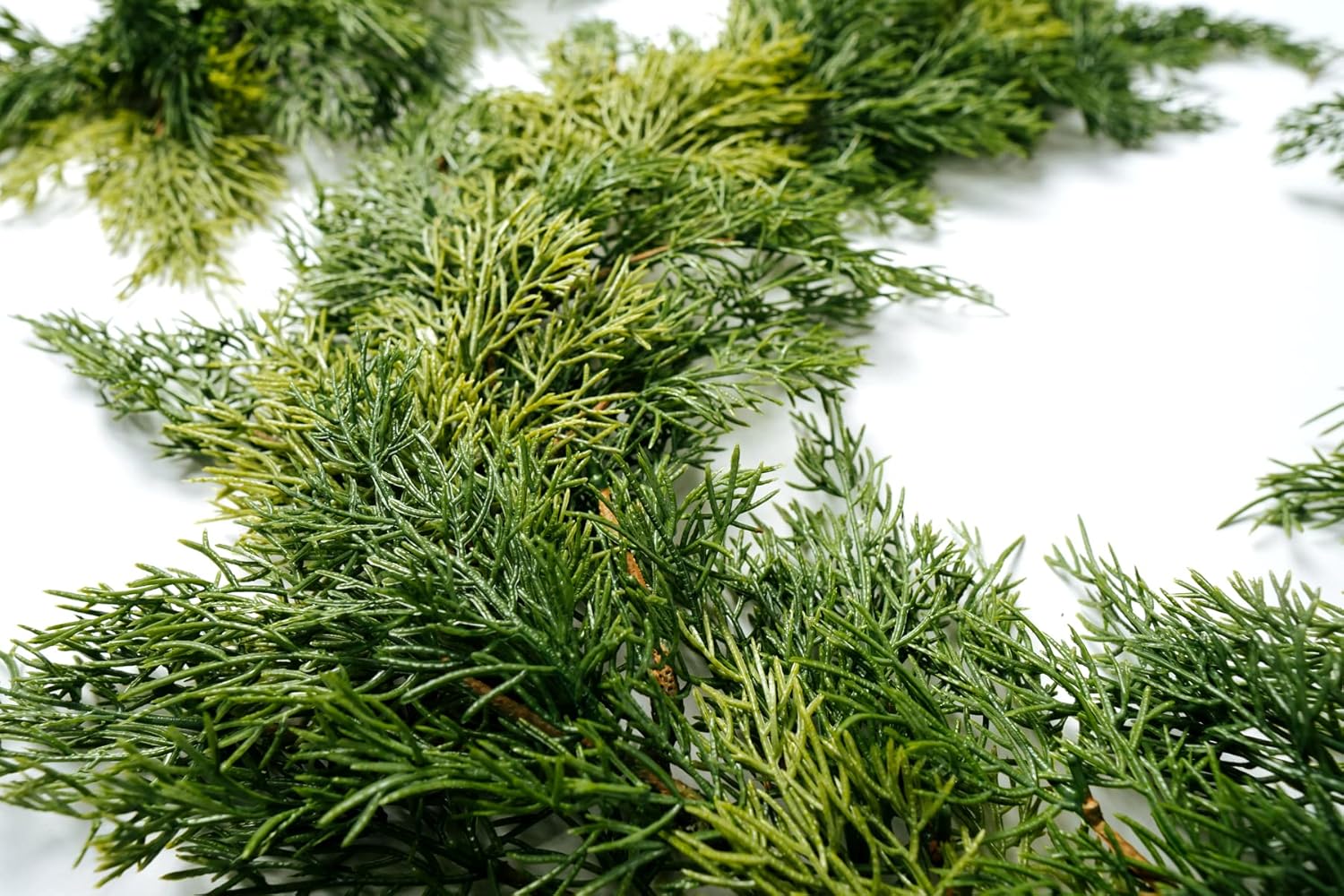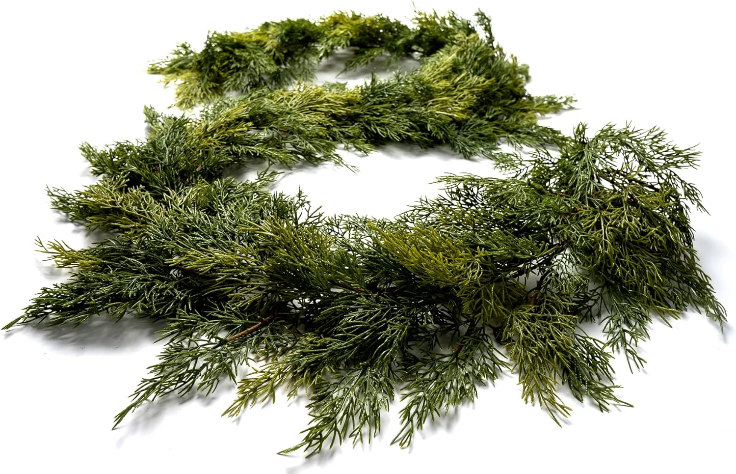 Customers find the cedar garland beautiful and realistic, particularly appreciating its use as a tablescape decoration. However, the garland lays flat, which some consider a drawback. Moreover, customers disagree on the value for money, with some finding it not great for the price. Additionally, the density receives mixed feedback, with one customer noting the branches are very thin.