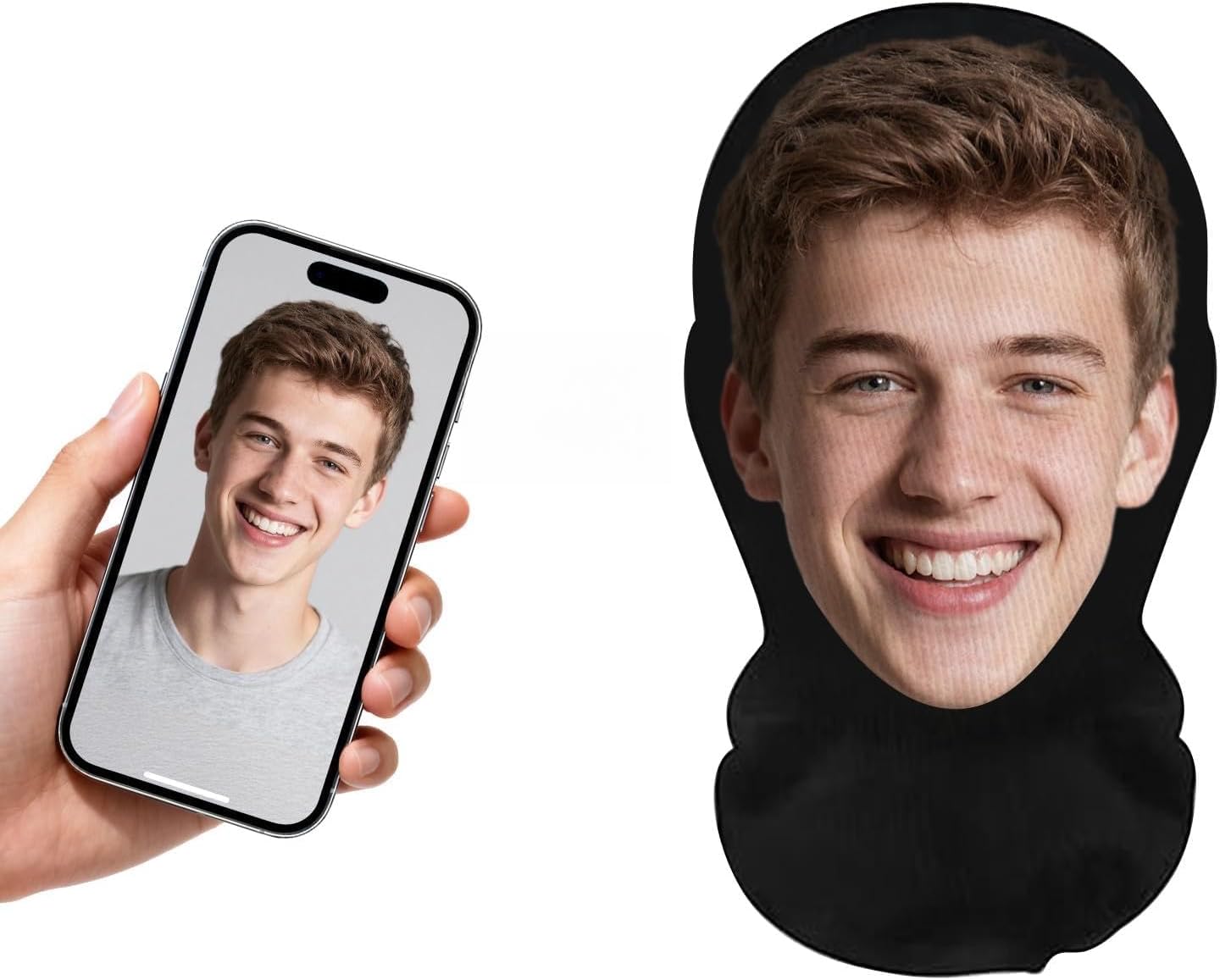 Our personalized masks make the perfect gag gift or party accessory. Lightweight, realistic, and endlessly customizable, they turn any photo into a hilarious wearable keepsake. Whether you want to be your friend, a celebrity, or your pet this Halloween β€” this custom face mask is your ticket to unforgettable fun!