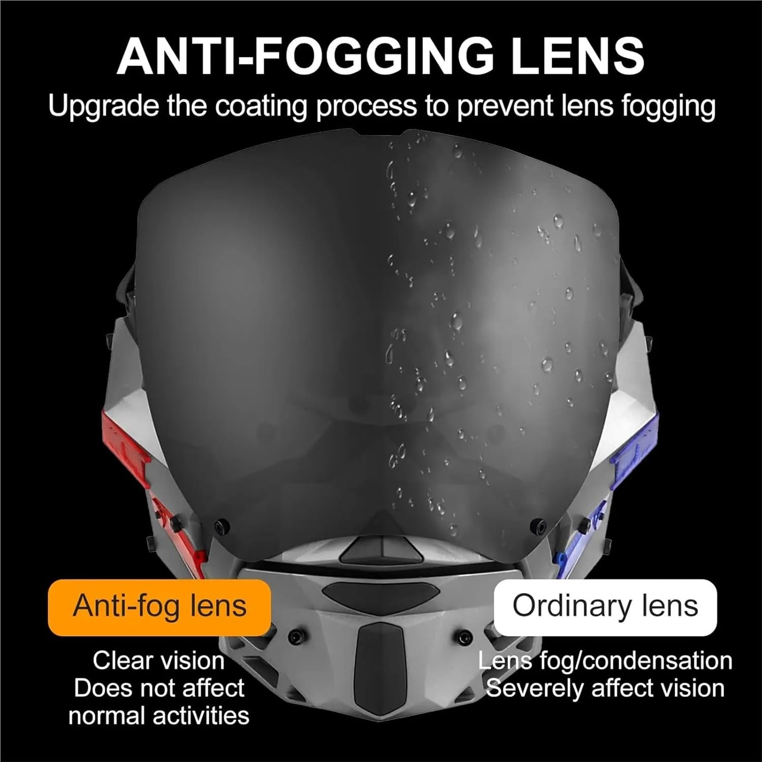 【Exquisite Craft】Come with the anti-fogging lens. Upgrade the coating process to prevent lens fogging. Let the buyer wear the rear vision will not be obstructed, clear vision, can always be more active in the activity.