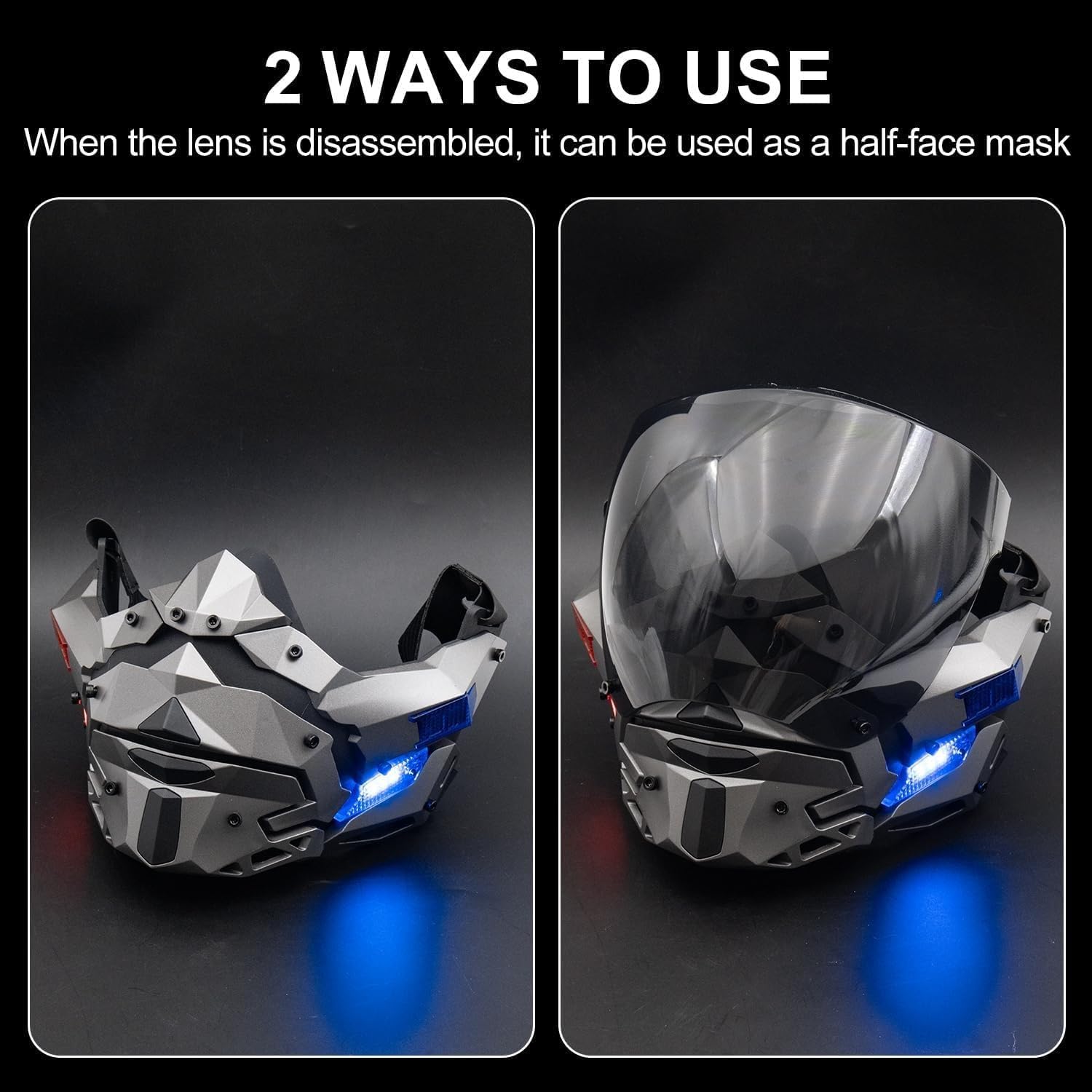 Cyber Punk LED Face Mask Cosplay Punk Full Face Mask Anti-Fog Detachable Half Face Mask Techwear for Party