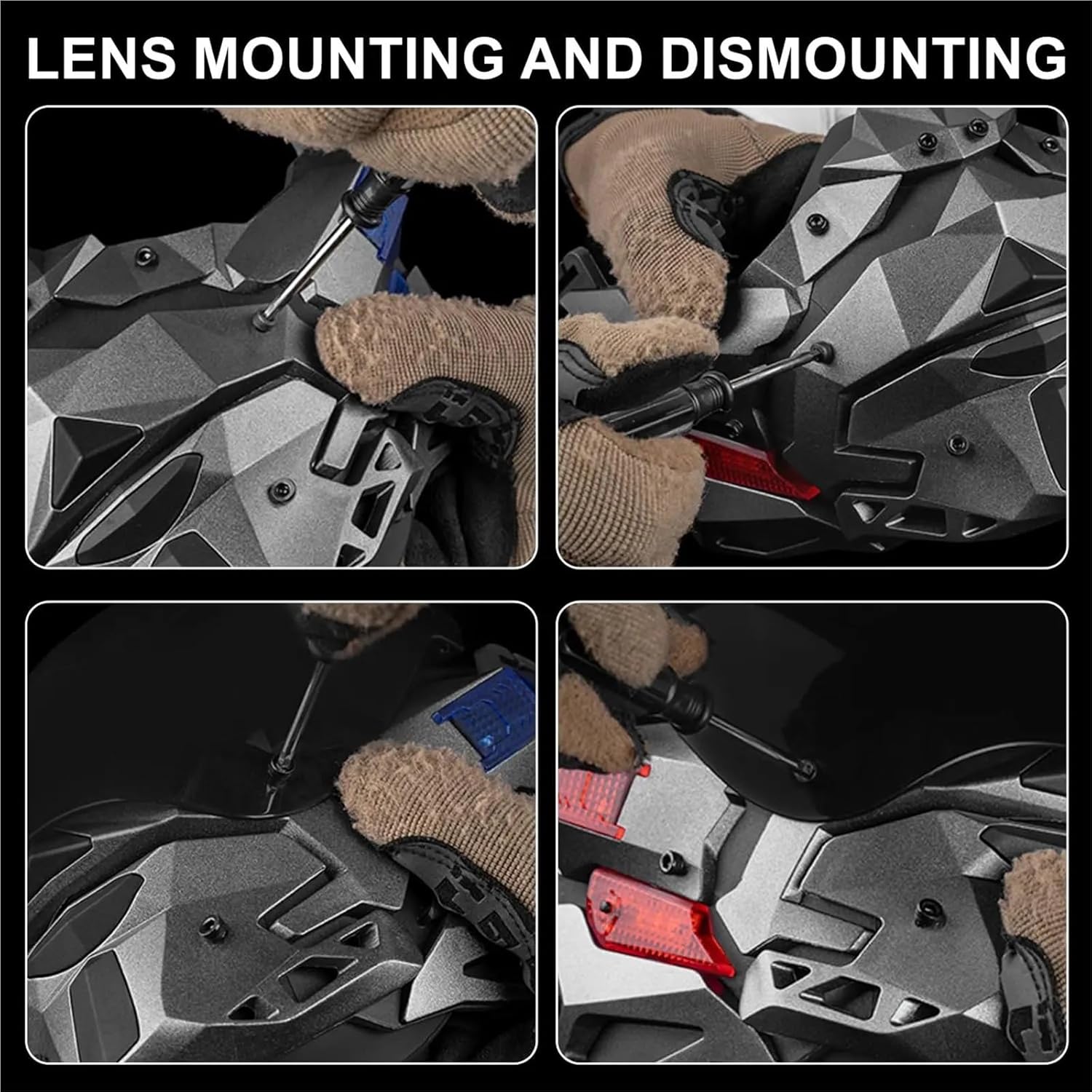 【Creative Design】The surface of the mask has a very technical design, reflecting the gradual color. It look cool! And this 2 in 1 mask has detachable lenses, you can use the half mask alone, or use the full mask mode with the lens.