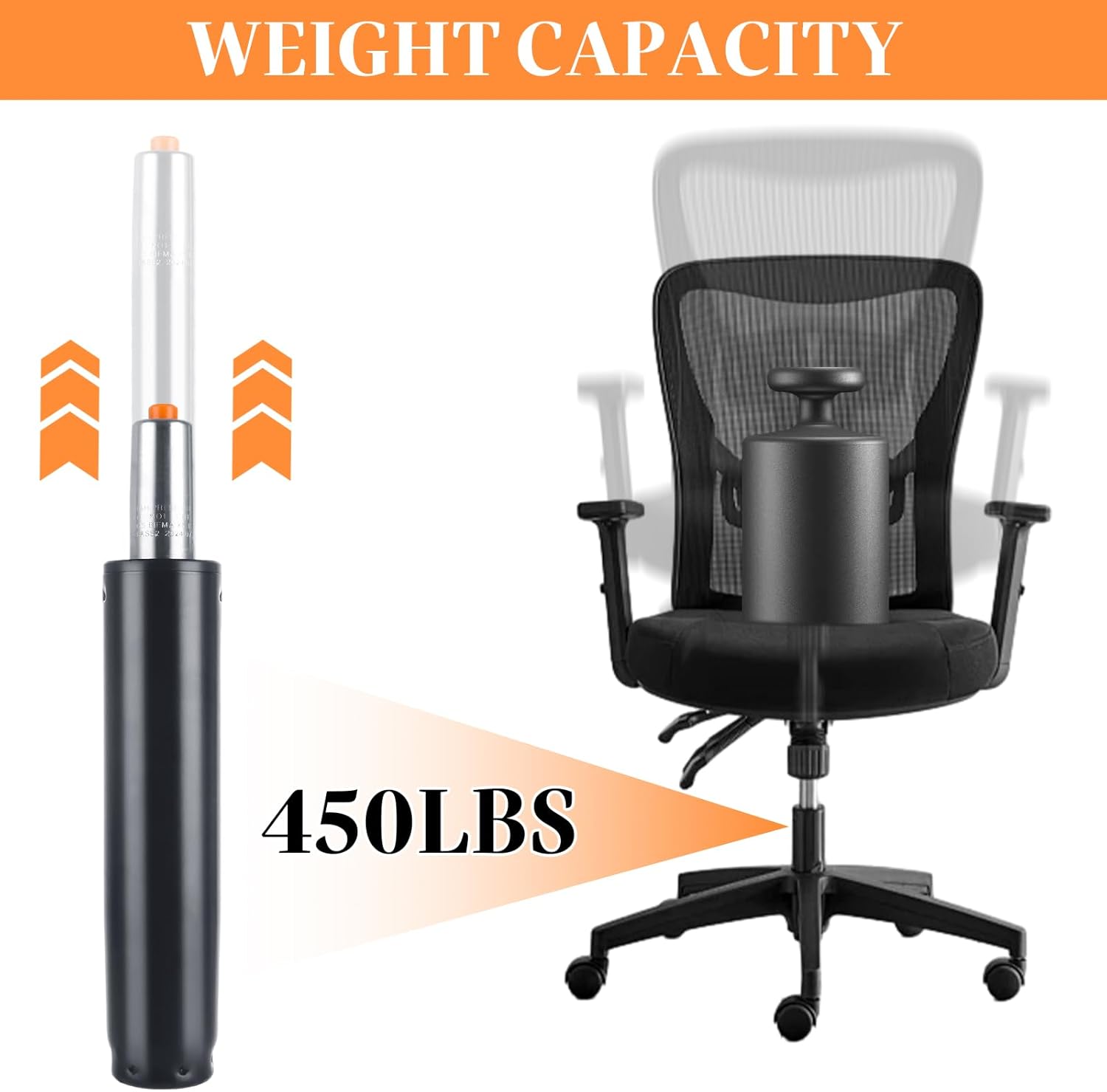 Premium Quality And High Capacity: Made from premium-grade steel, with a max capacity of up to 450 lbs, our chair gas lift cylinder is reliable and built to last, minimizing the need for replacements