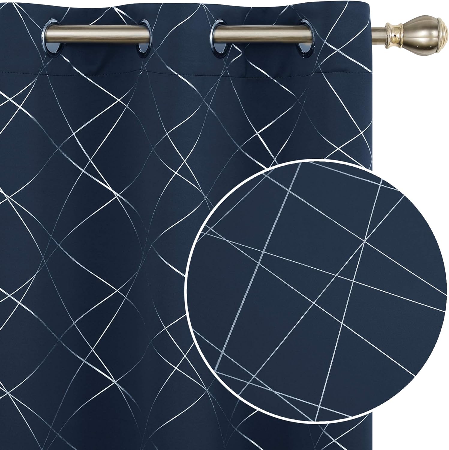 BEAUTIFUL DESIGN – Designed with a soft feel fabric, a silver foil printed line pattern and a beautiful drape, the Deconovo geometric line foil print blackout curtain with grommets adds personality to your interior while providing maximum privacy all day long