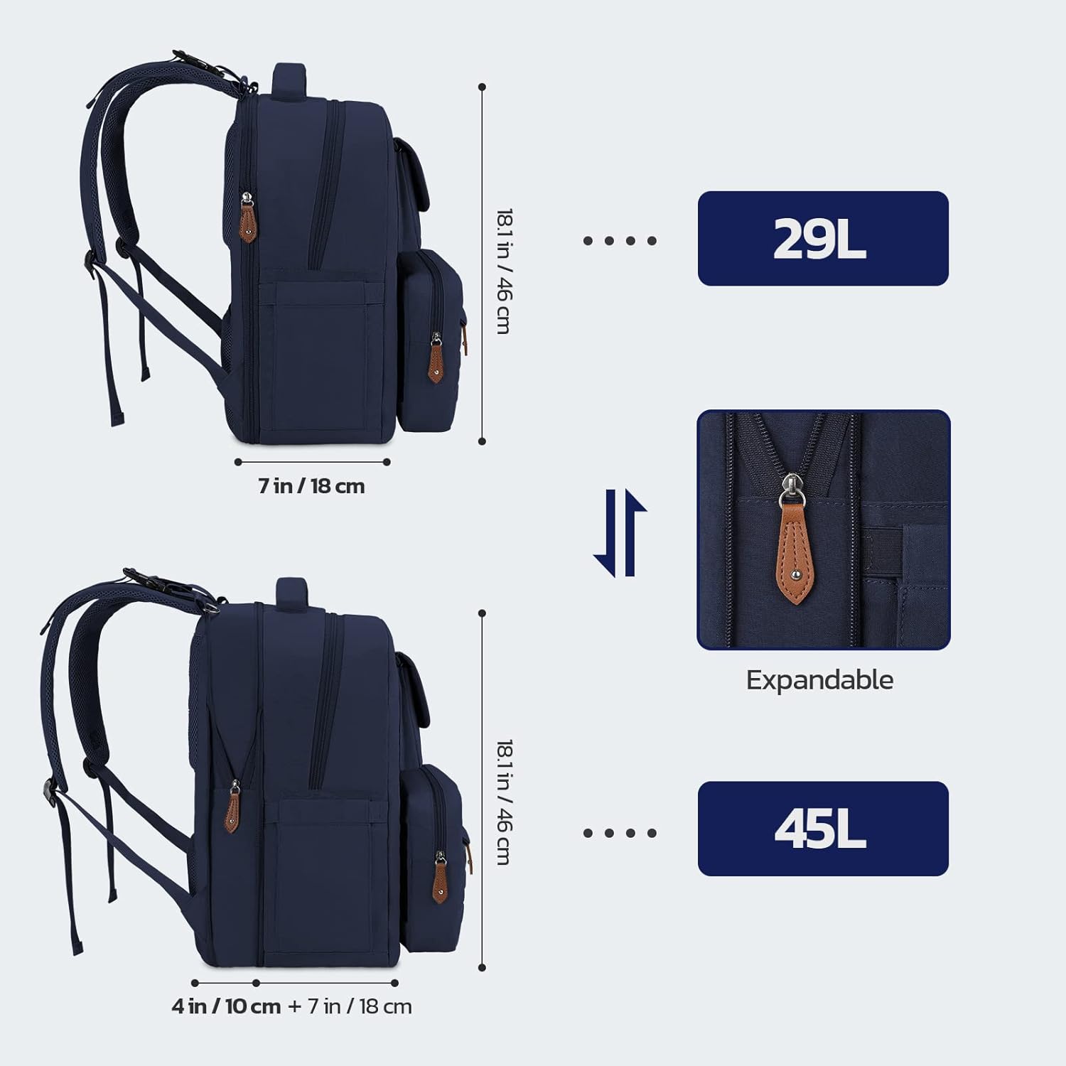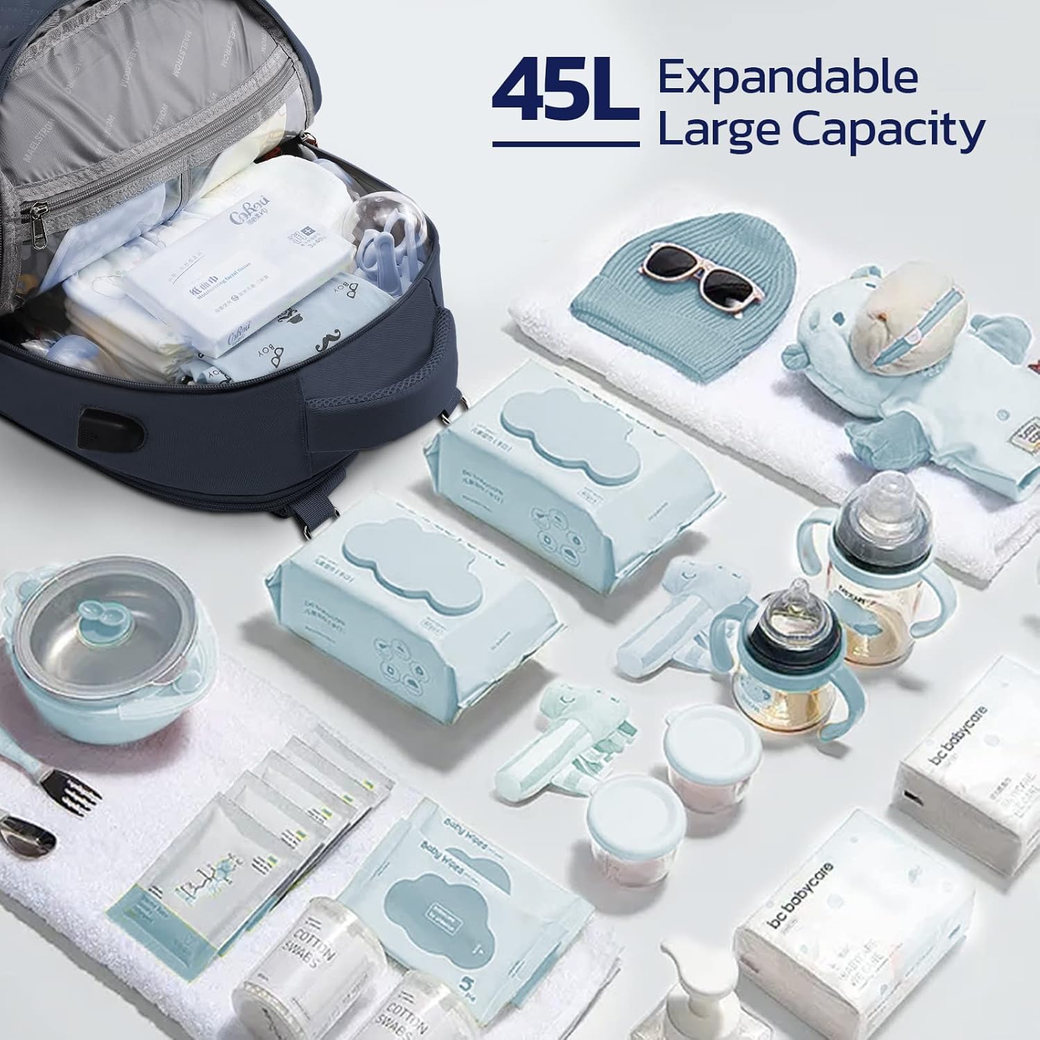 Expandable Large Capacity Diaper Bag: Standard size is 18.1*13.8*7.1inch (29L), expandable size is 18.1*13.8*11inch (45L). the baby bag features a large compartment and 16 pockets. Coming with a diaper pad ,dirty clothes bag and removable pacifier bag .Maelstrom baby diaper bag is large enough to hold the essentials for your kids. There is also extra space for your laptop,cell phone,keys and so on