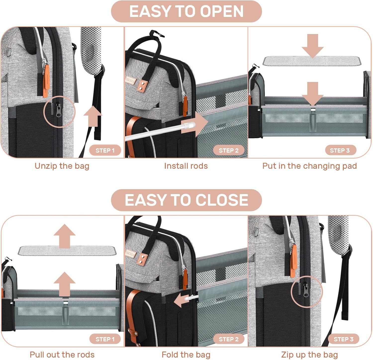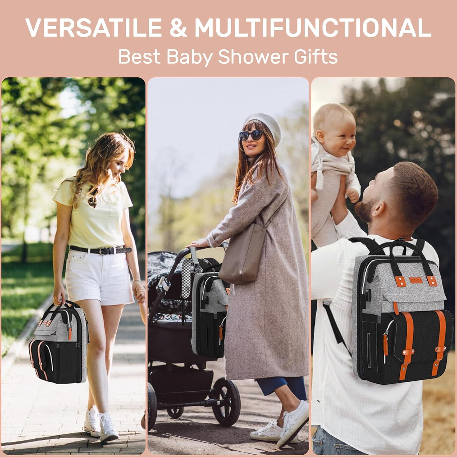 Diaper Bag Backpack with Changing Station,Large Baby Backpack for Travel Multifunctional Baby Bag for Mom & Dad, GrayBlack