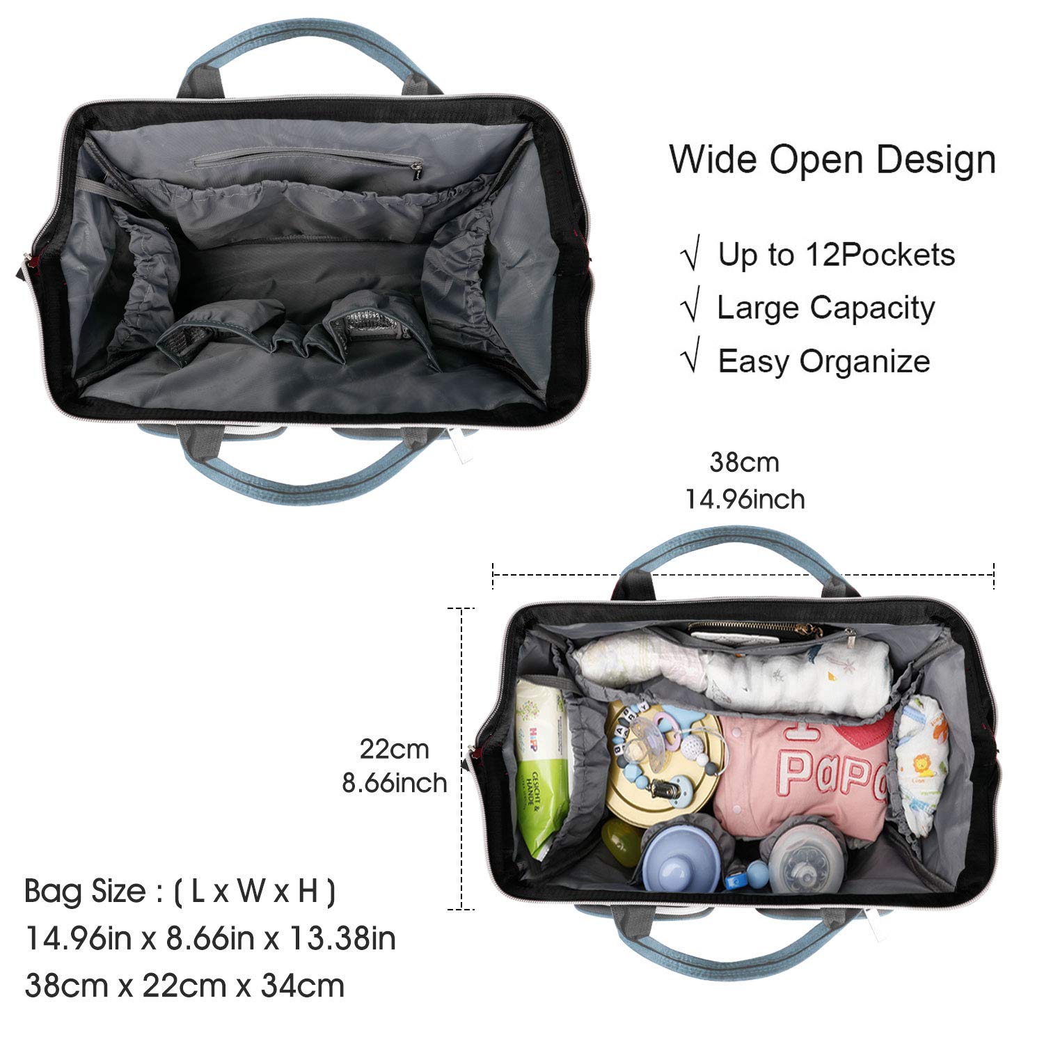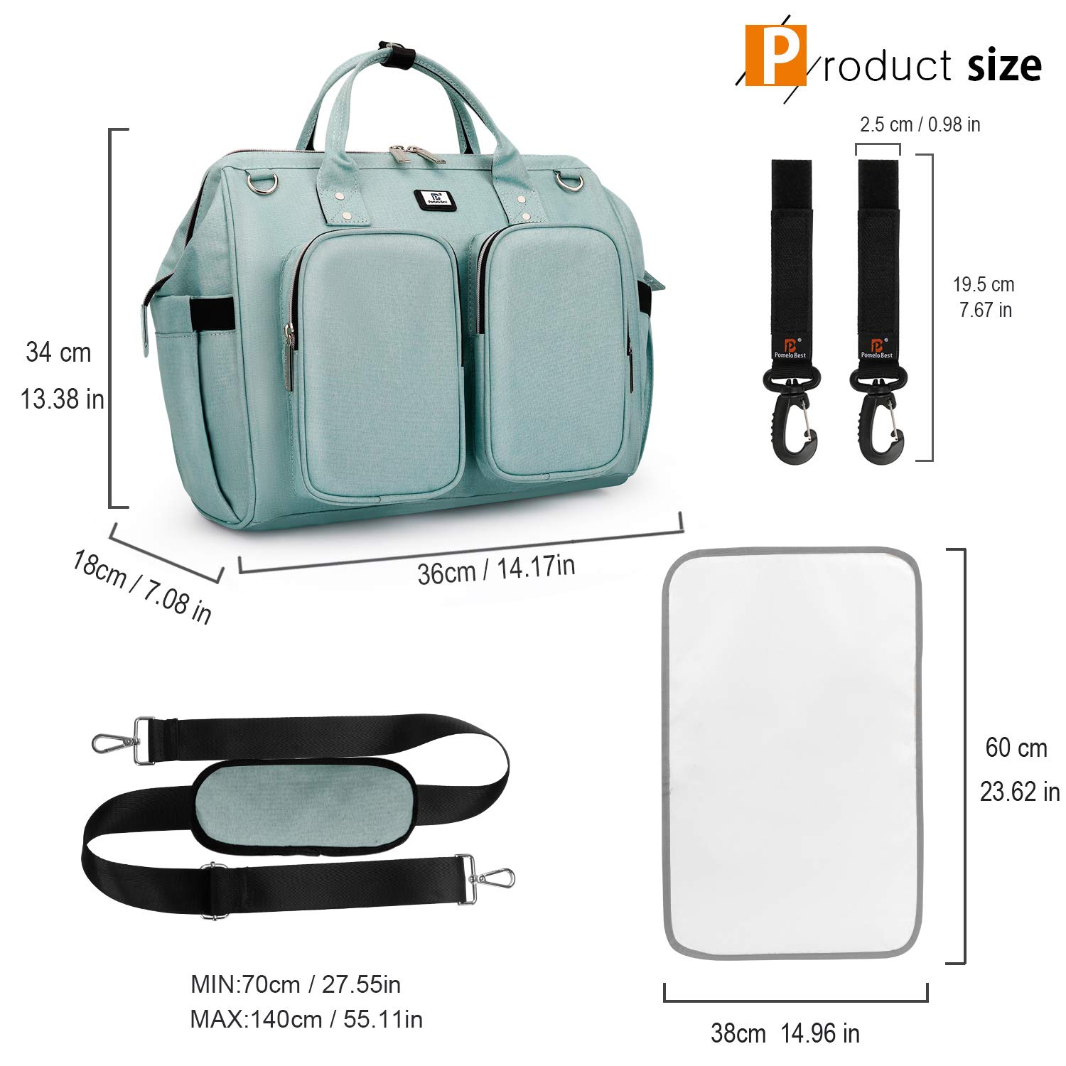 LARGE CAPACITY & SPACIOUS DIAPER BAG: The dimensions of our baby bag is 14.1″ x 13.3″ x 7″. Pomelo Best diaper bag tote features the fish-mouth design, easy to view and remove utensils. The baby diaper bag interior has 5 easy-access pockets for bottles, diapers or wipes, while 5 external pockets efficiently store baby bibs, pacifiers, spoons, and more.