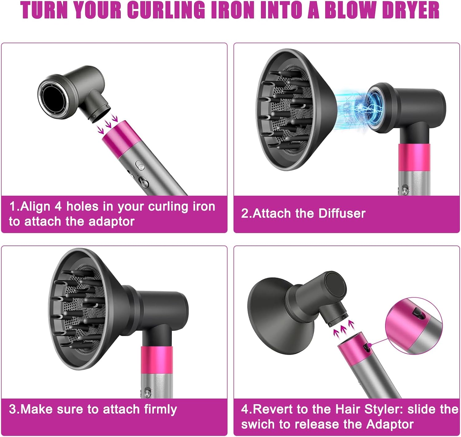 Easy to Install: May cause overheating during use, please pause for a moment before continuing use, 1* diffuser for dyson airwrap, 1* Adaptor