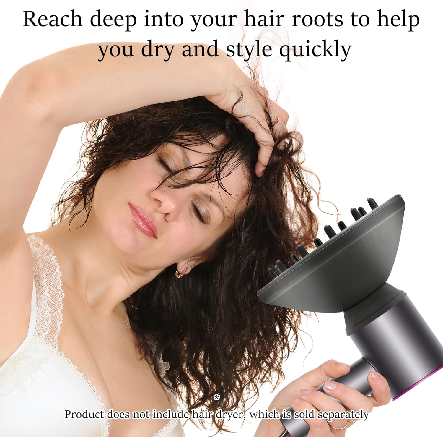 Diffuser Attachment for Dyson Supersonic Hair Dryer HD02 HD03 HD08 HD15 – Styling Tool for All Hair Types Including Wavy, Curly – Dry and Fluffy – Black
