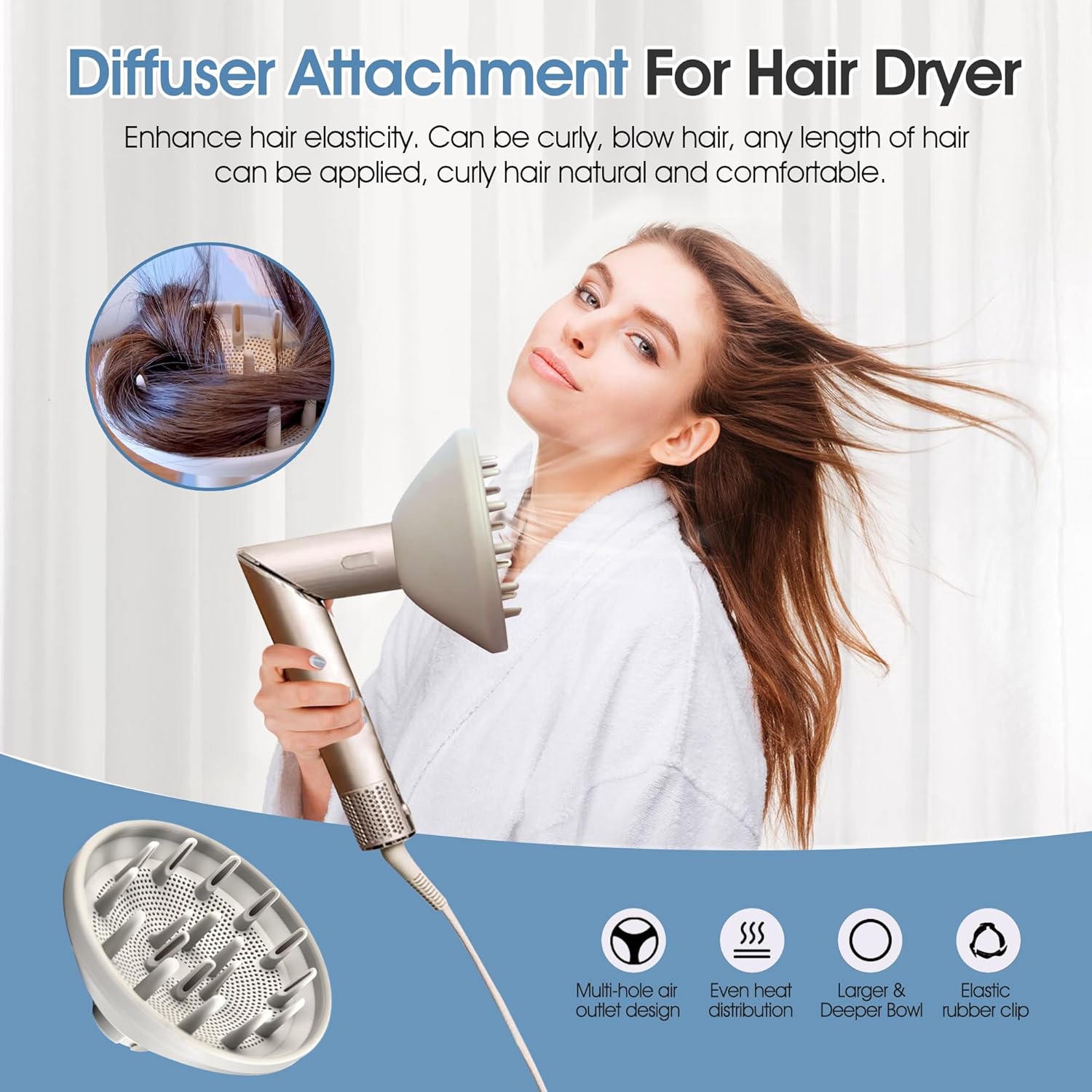 Salon-Quality Results: Whether you want to curl your hair or add volume, our hair diffuser is the perfect tool for almost all your hair styling needs. You can achieve salon-worthy results from the comfort of your own home. Wavy, curly, and coily hair.