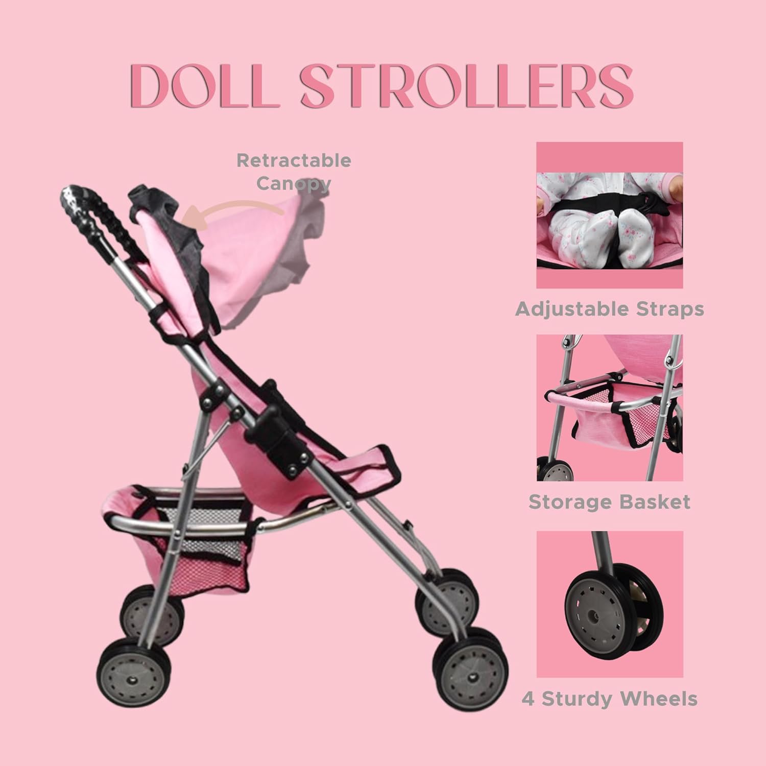 High Quality & Durability: Our baby doll stroller is build to last and features a sturdy frame with smooth rolling wheels and durable materials; safe for indoor and outdoor fun activities; designed to endure the excitement of active little ones